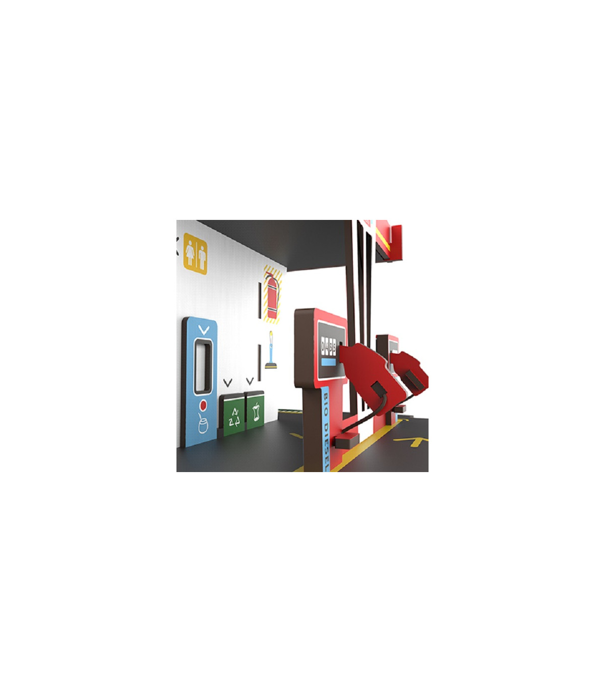 Nuestra estación esta diseñada para que la puedas armar facilmente, seguí los pasos y a jugar!. Es compatible con todo nuestro sistema de calles. Incluye: Area de servicios, lavadero, carga electrica,shop,estacionamiento y taller mecanico.