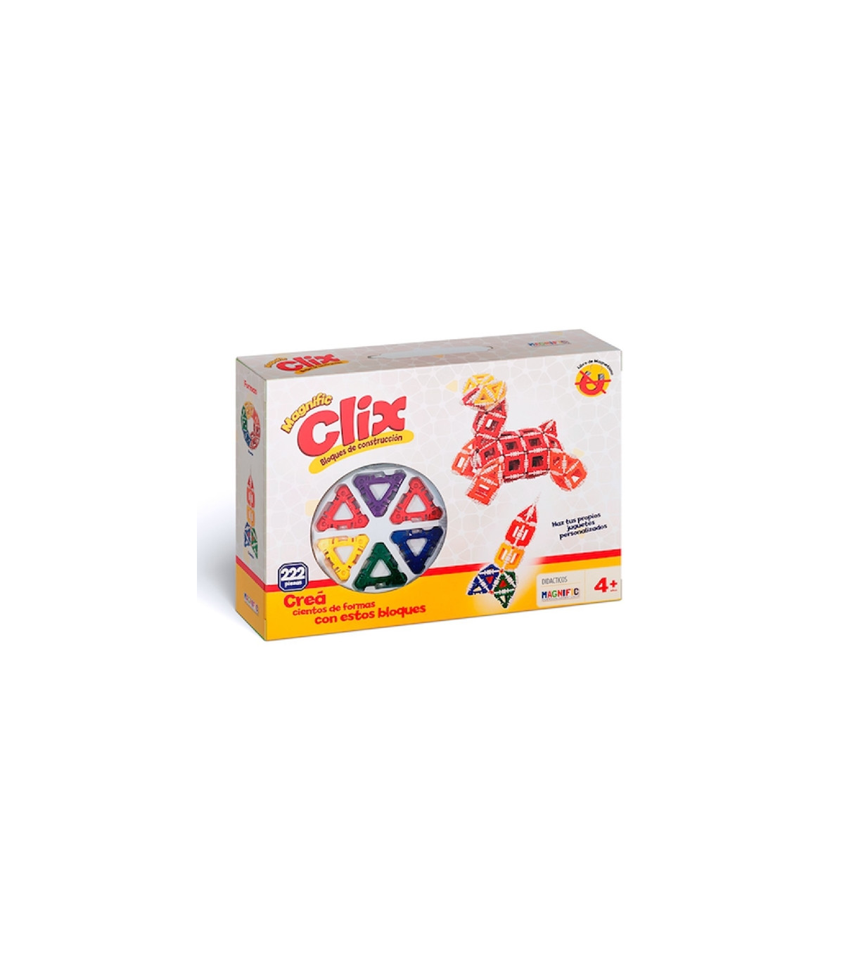 ¡Que tu imaginación y creatividad fluyan creando las más divertidas construcciones a tu gusto! Piezas Clix de construcción de Magnific para crear cientos de formas, objetos, animales y más. Formas de las piezas: Cuadrado, Triángulo, Rectángulos, Rejas, Pu
