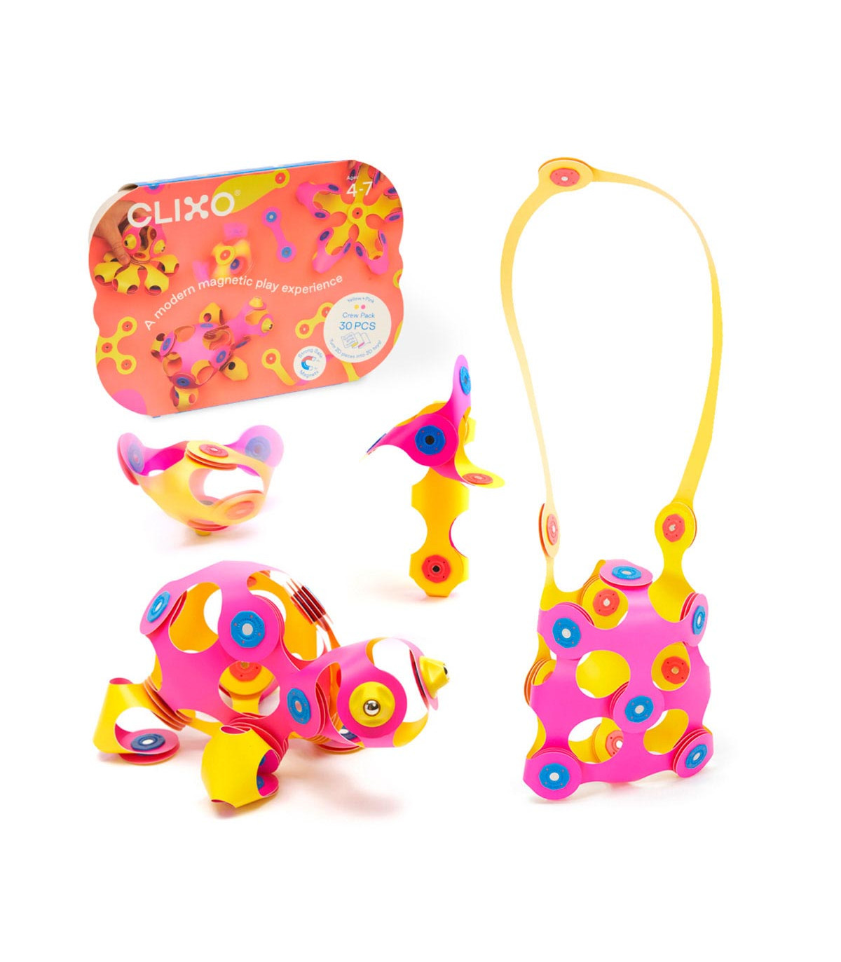 Este Crew Pack ofrece un sinfín de posibilidades creativas, desde molinetes hasta hélices. Contiene 30 piezas en 8 formas únicas de Clixo, incluyendo 2 spinners. Eligí entre 2 colores diferentes y probalo.