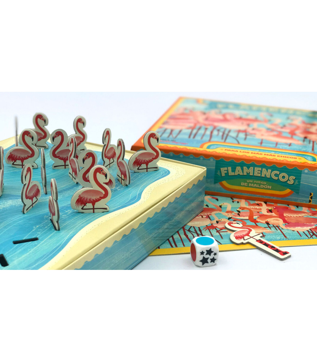 Flamencos es un juego de memoria y velocidad para los más chicos de la casa. ¡En este juego los flamencos usan medias debajo del agua! El objetivo del juego es coleccionar la mayor cantidad de flamencos de la laguna, buscando que sus medias coincidan con