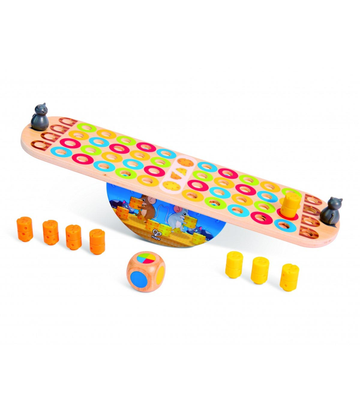 Un juego de mesa estratégico y de equilibrio donde los jugadores mueven sus piezas de queso sin hacer que el gato se caiga o despierte. Una prueba de habilidad, estrategia y pulso para ser el primero en llevar todo su queso a casa.