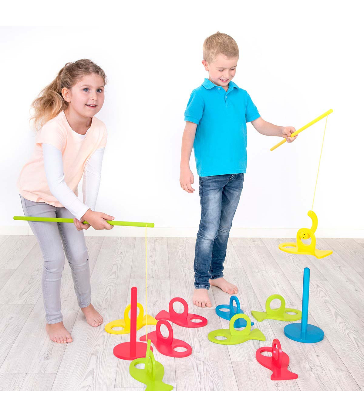 La versión gigante de este juego de destreza entretenido pero desafiante. La tarea consiste en capturar los peces y depositarlos en las bases que les corresponden, usando las cañas de pescar. El juego desarrolla la motricidad, la matematica y lo social.