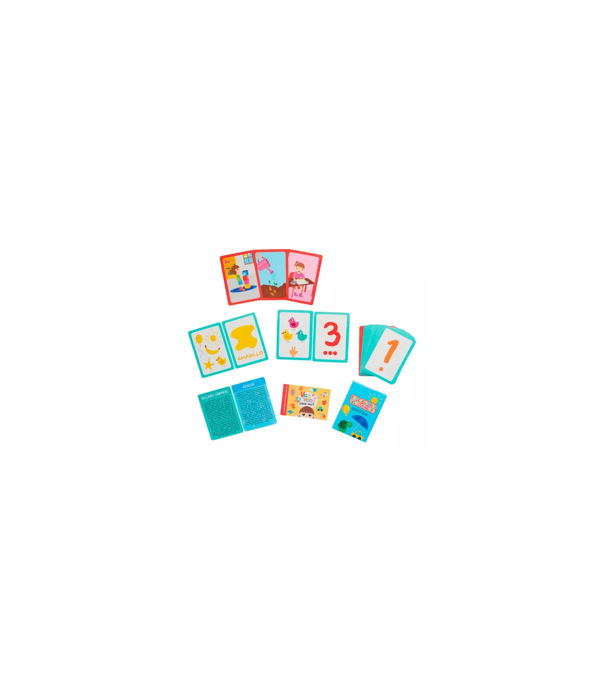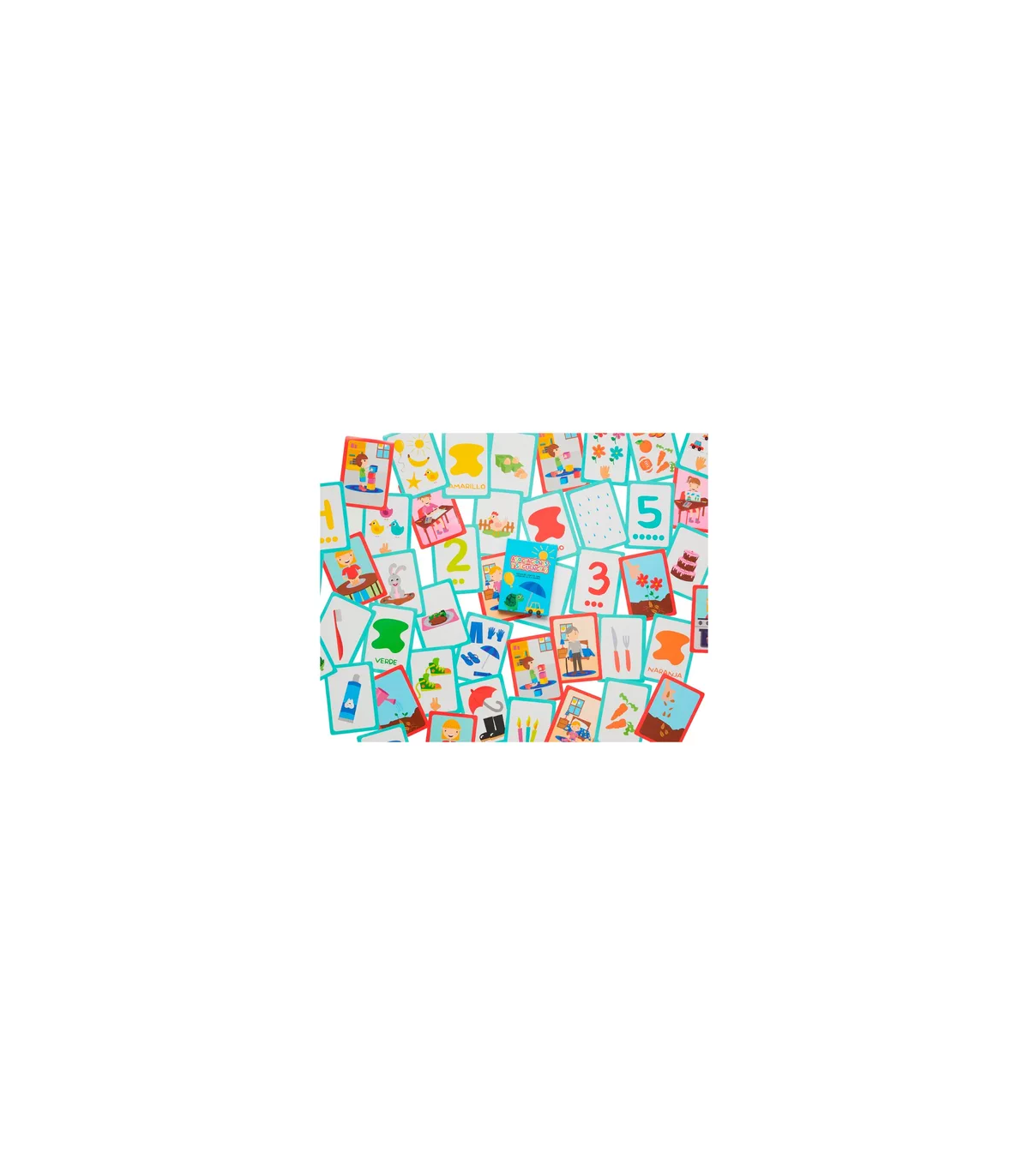 49 cartas educativas para trabajar asociaciones y secuencias donde se trabaja números, colores, objetos y escenarios comunes para los niños y niñas.