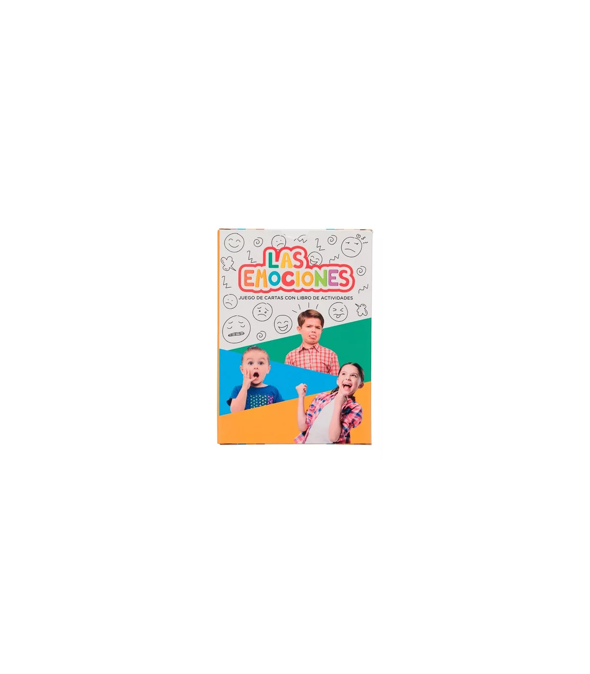Contiene libro de actividades y 4 tarjetas con ideas de juegos. Cada emoción está representada por imágenes reales de niños y niñas de diferentes edades.