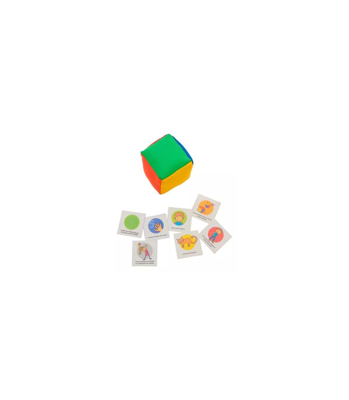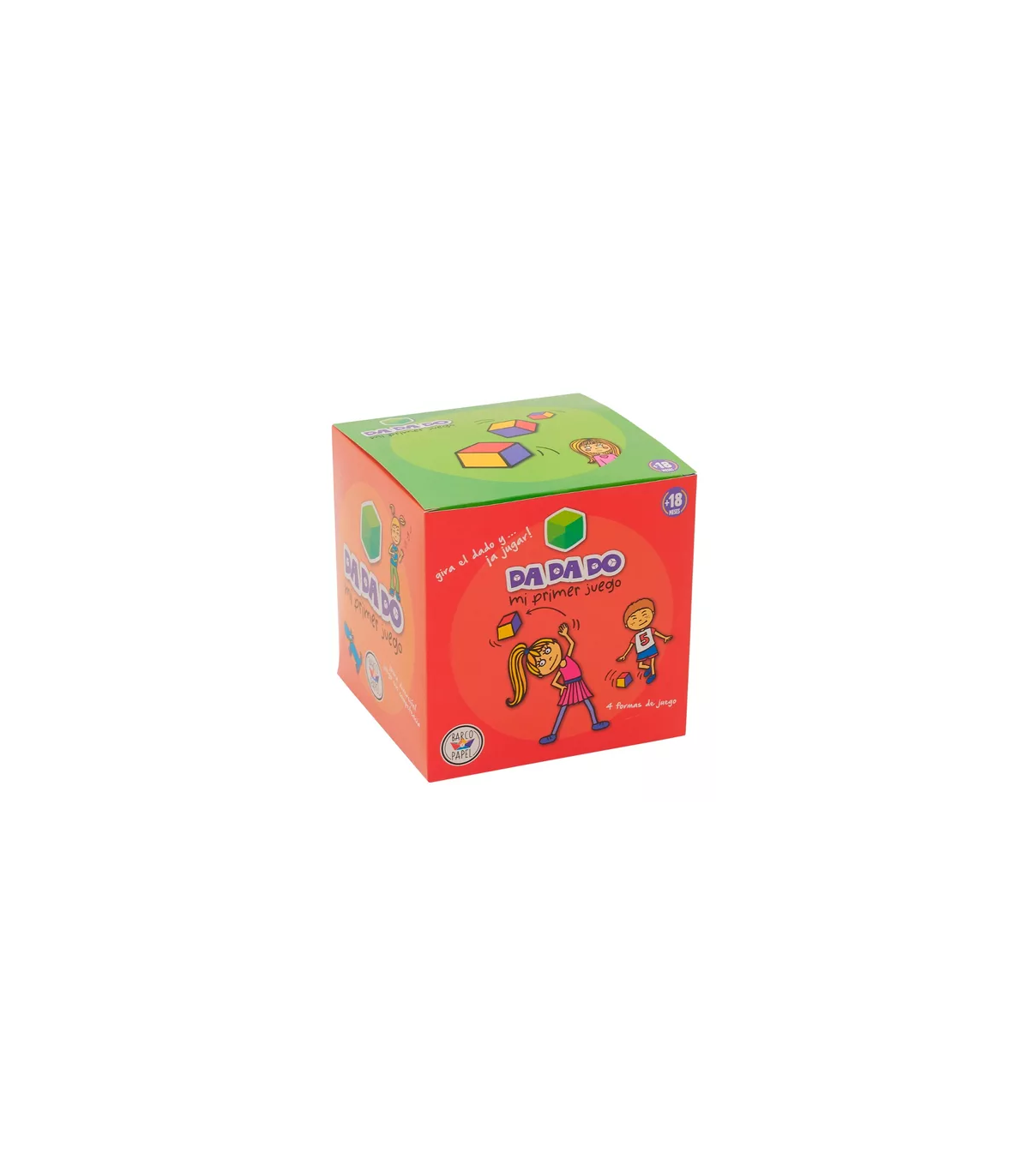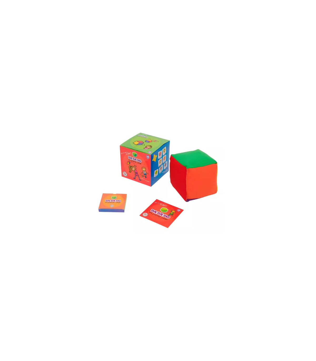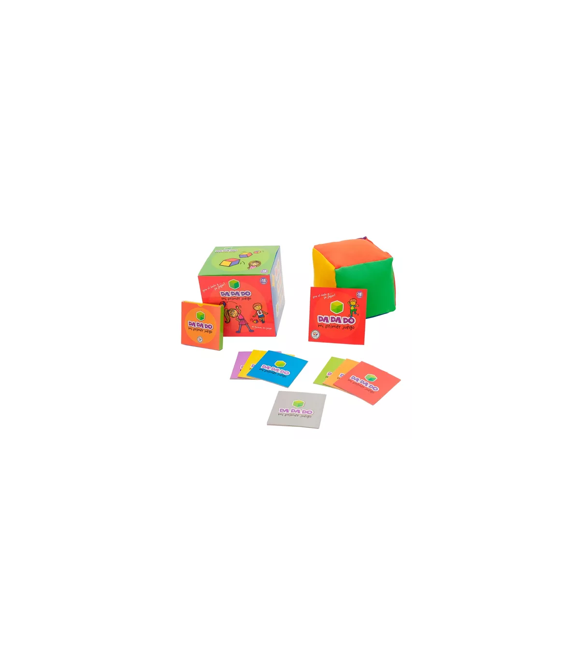 Un primer juego para usar desde los 18 meses en adelante. Contiene un dado gigante suave y blandito con 6 colores diferentes y un mazo de cartas por cada color. Con 4 formas diferentes de jugar y reglas simples y flexibles, DA DA DO es diversión garantiza