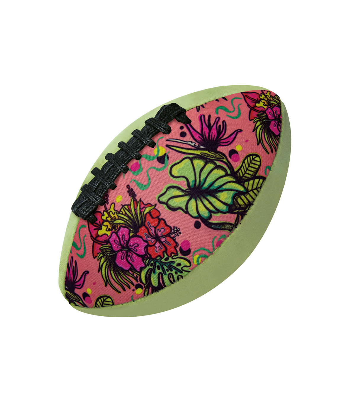 Pelota clásica de fútbol americano en tamaño chico, ideal para que los chicos jueguen en la playa o el agua. Impermeable, con núcleo de goma espuma, grip antideslizante y cubierta de lycra. Edad: +6