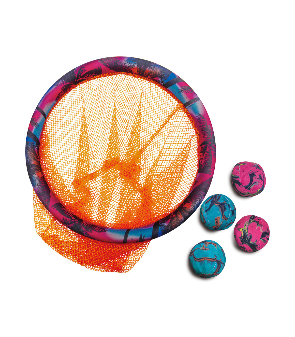 Embocala o te vas al agua. Dunk or Dive es un juego de lanzamiento para pileta con aro flotante y 4 bolas que se hunden. Jugá a encestar antes que el resto o nadá a buscarlas. Edad: +8 (supervisión adulta recomendada).