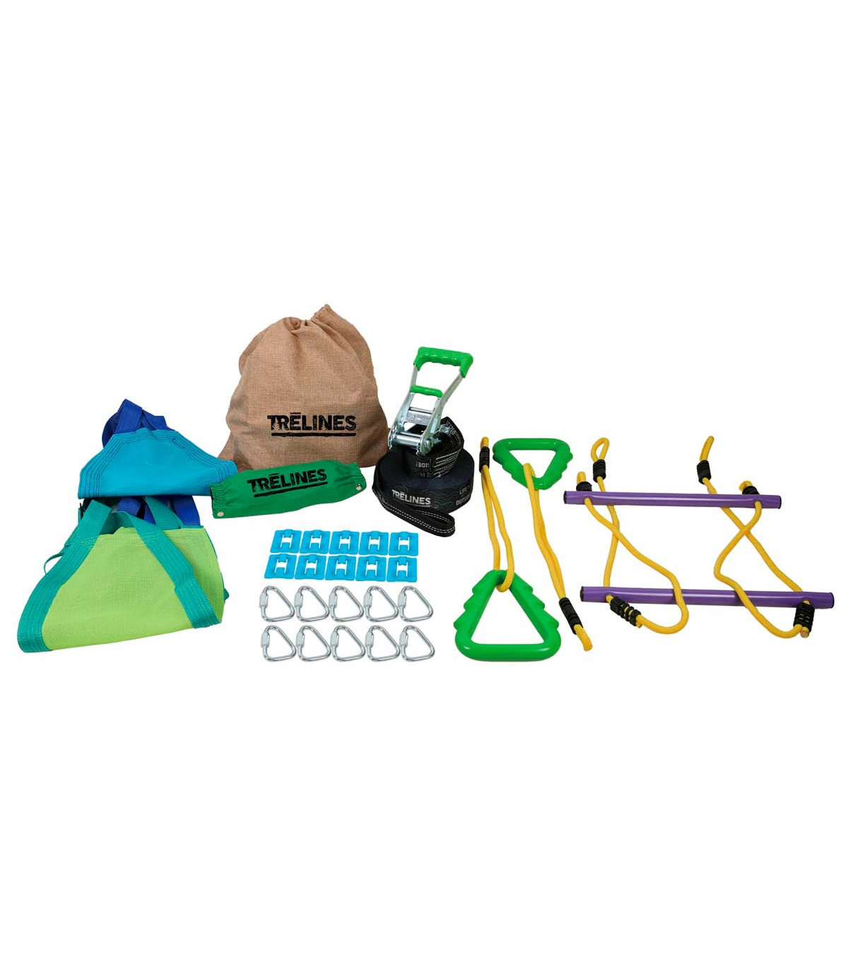 Transformá tu jardín en el lugar favorito de los chicos con este kit multifuncional que incluye una cuerda de 12 m, 2 columpios ajustables, 1 juego de anillos de gimnasia y 1 barra de trapecio doble. Desarrolla el equilibrio, la coordinación y la fuerza.