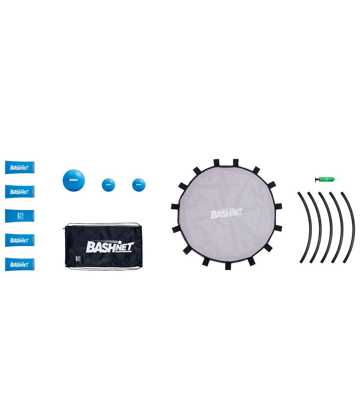 Bash-Net es un juego tipo vóley 2 vs 2 con red circular y sin límites. Ideal para jugar en cualquier superficie, promueve reflejos y estrategia en 360. Incluye red pro, pelotas de juego y entrenamiento, patas para todo terreno y bolso de transporte.
