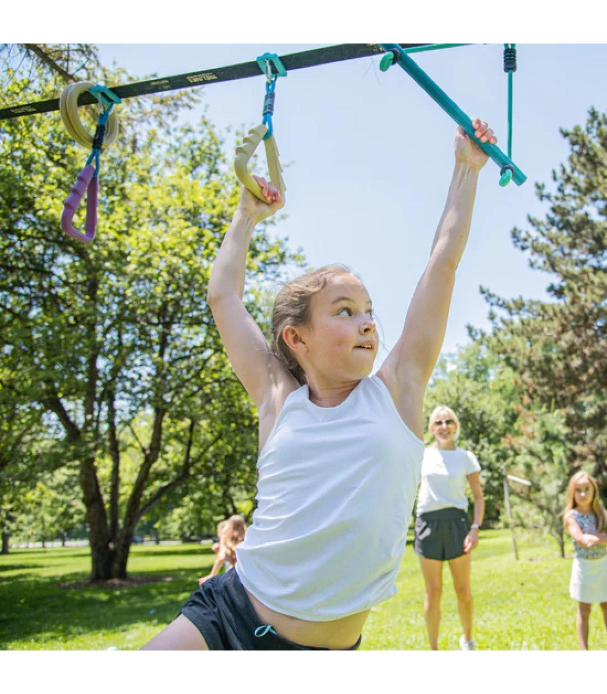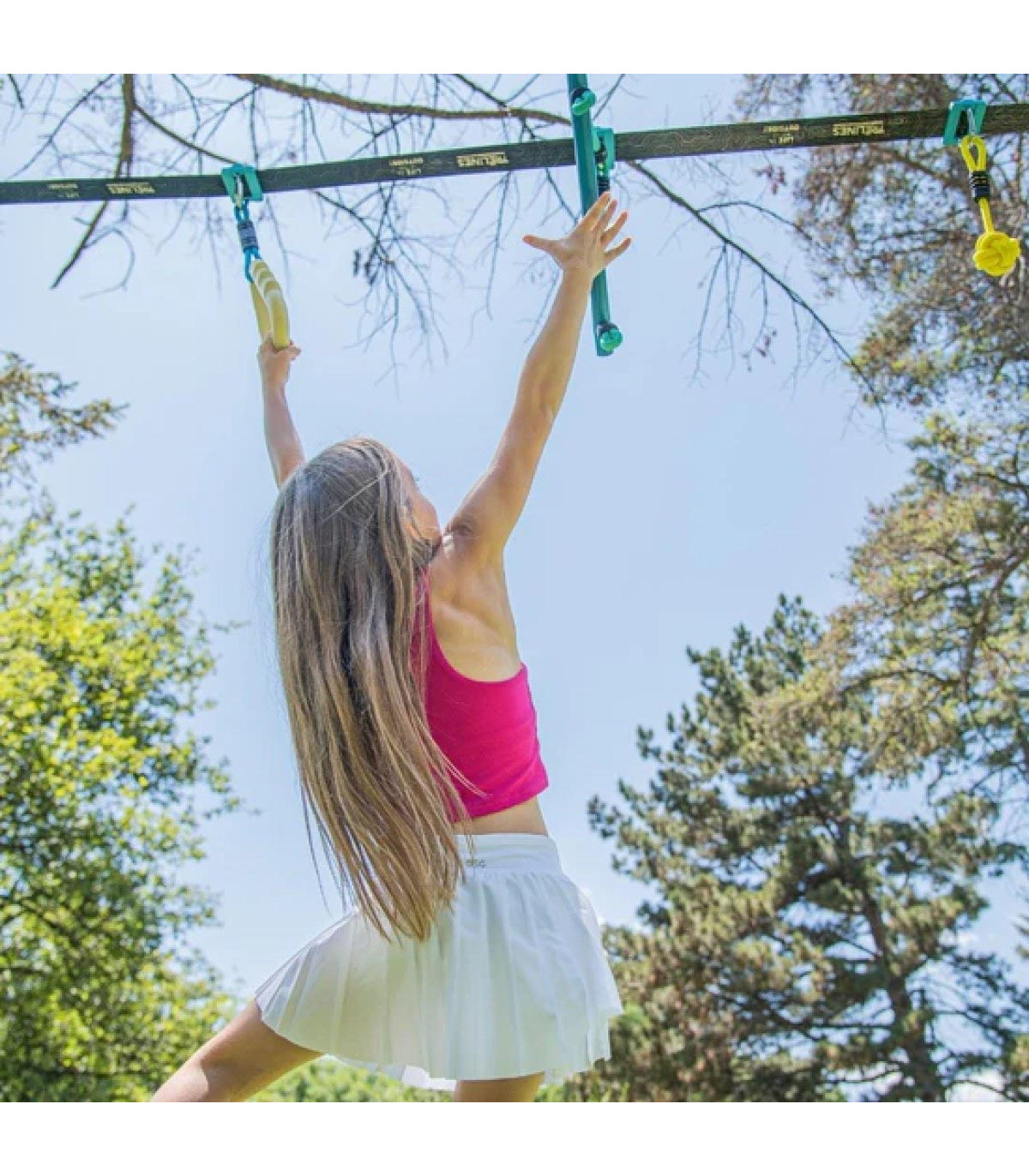 Entrená como un ninja con esta línea aérea de Trelines con distintas pruebas para un recorrido Ninja de 10 metros.