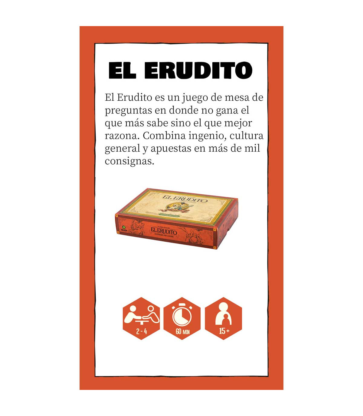 Un juego de preguntas donde no gana el que más sabe sino el que mejor razona. Ideal para jugar en equipos. Combina ingenio, cultura general y apuestas en más de mil consignas. Según el casillero, se apuesta un monto y se responde una de las tarjetas.