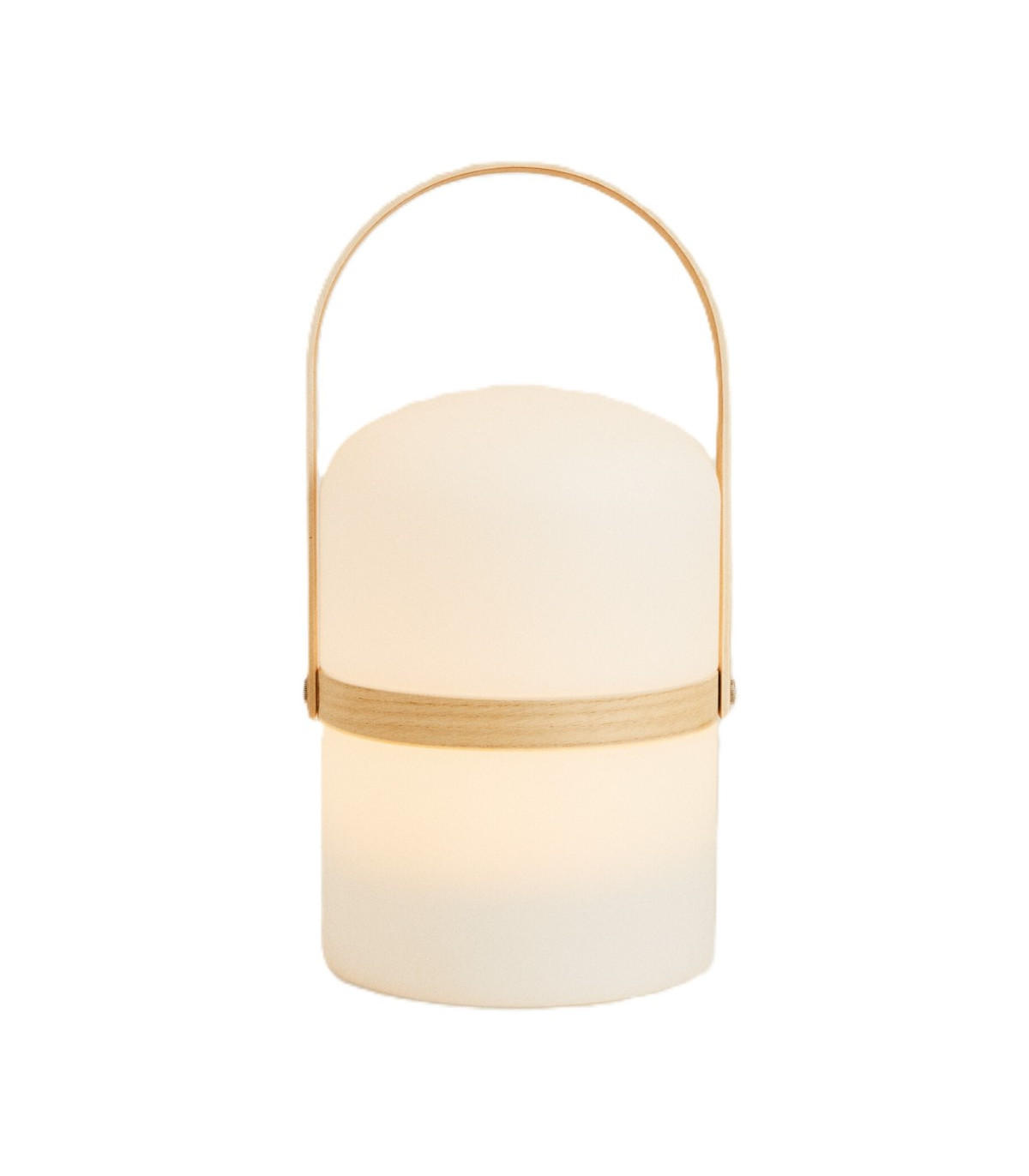 Lumis Large es una lámpara LED recargable (IP44) aprobada para exteriores. Luz blanca cálida 2800-3200k. Hecha de plástico blanco mate y un mango de madera color Natural. Con 3 Watt de potencia, tiene 3 niveles de brillo con los que se puede ajustar fácilmente la iluminación ideal. Gracias a la función inalámbrica y al mango fino, es fácil de transportar. El mango se puede girar de un lado a otra permitiendo utilizar la lampara en una mesa o colgarla. Viene con cable USB para recargarla.