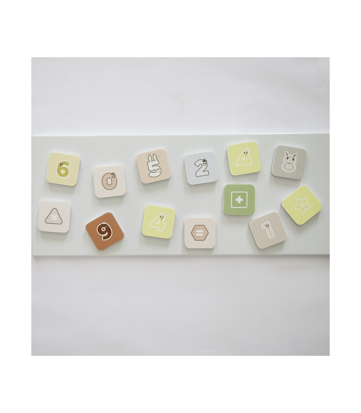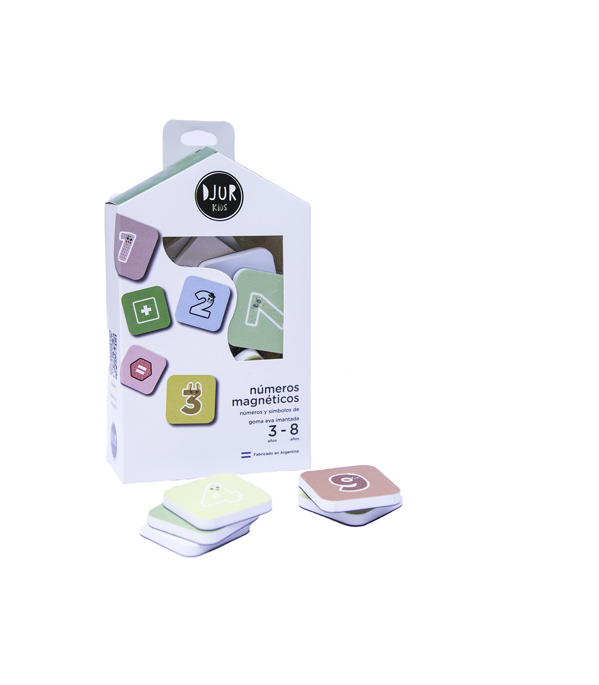 Aprendé los números jugando con los amigos de Djur Kids. 2 pares de números del 0 al 9 y símbolos de goma eva imantadas