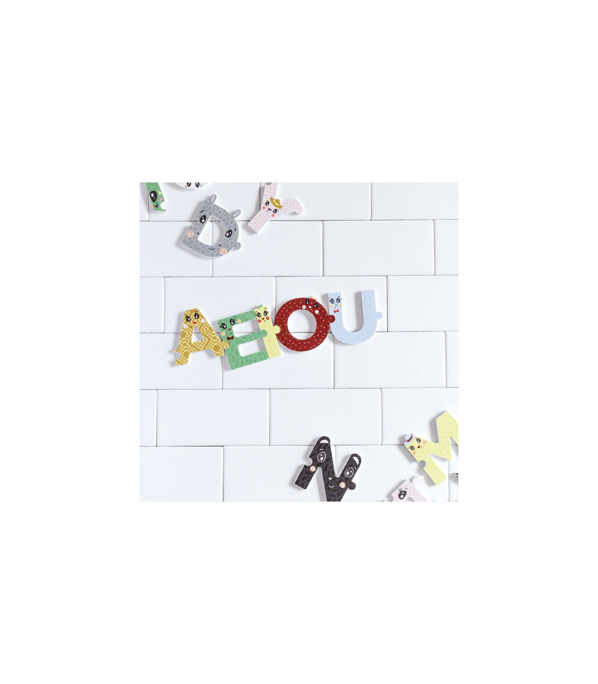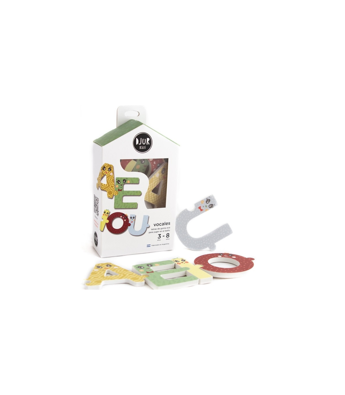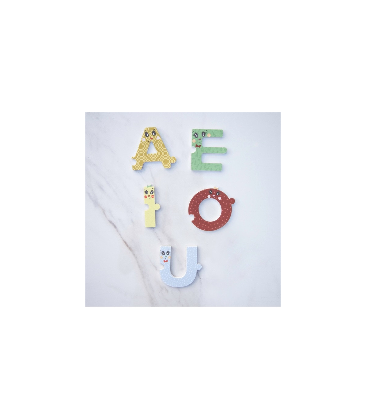 A, E, I, O, U. ¡A fuerza de jugar aprendemos las vocales! 5 letras de goma eva encastrables para acompañar los procesos de aprendizaje.