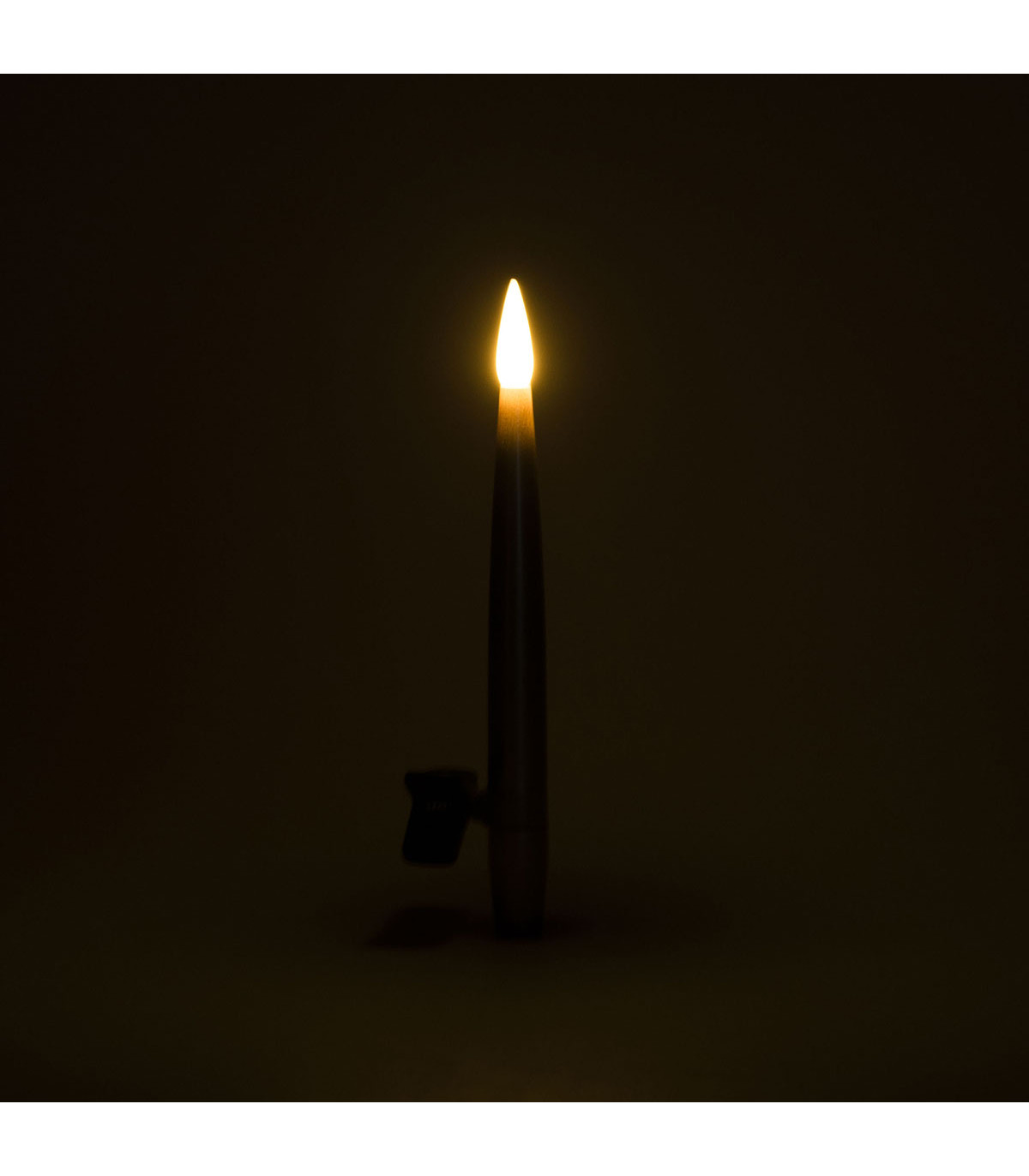 Set de 10 velas de luz LED cálidas e inalámbricas, color dorado con clip verde. Cada vela lleva 1 pila AAA, no incluida. Se operan con un control remoto que viene incluído.