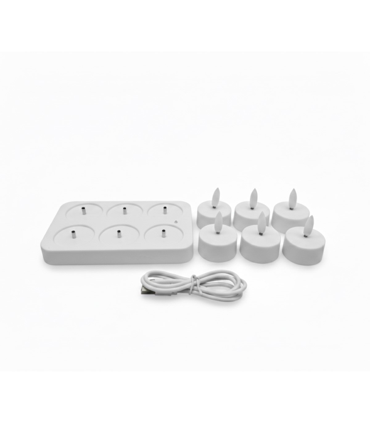 Velas Tealights LED Blancas x 6 con Base de Recarga USB Alparamis