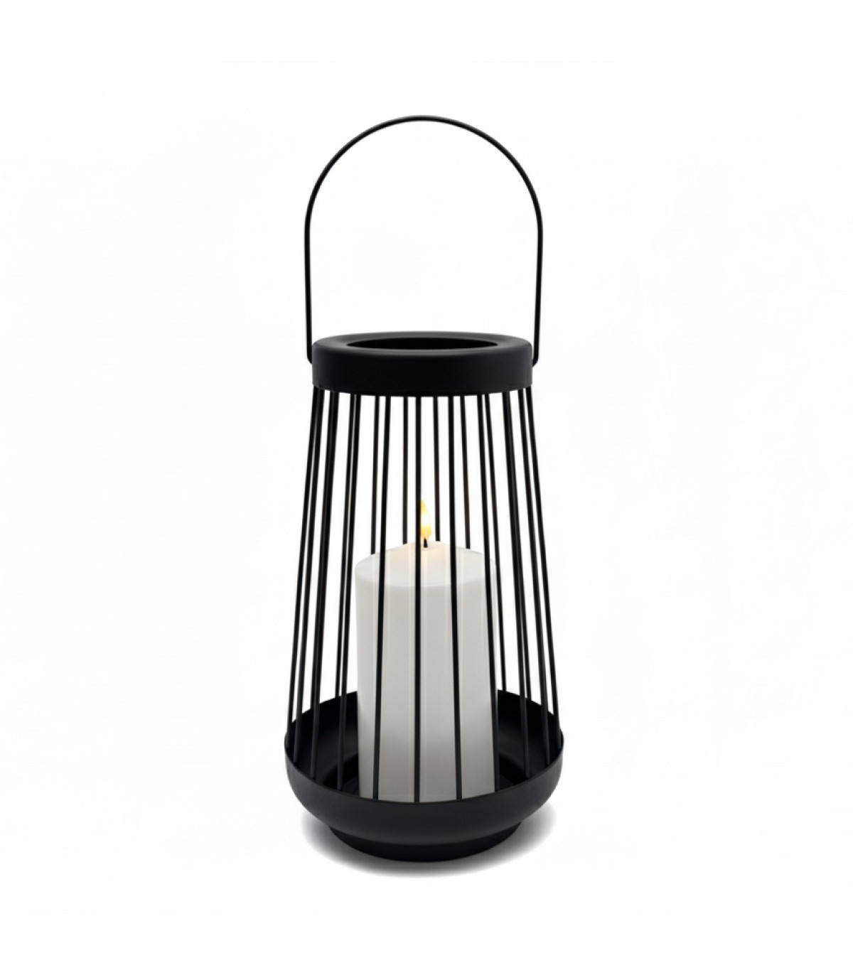 Farol Negro 26 cm con Vela Pilar LED Alparamis