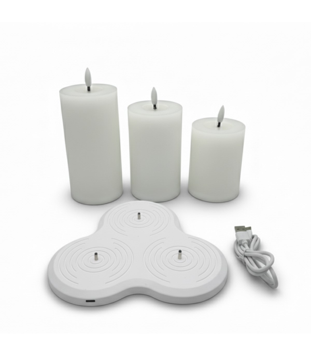 Set de 3 Velas Pilar LED Blancas con Base de Recarga USB Alparamis