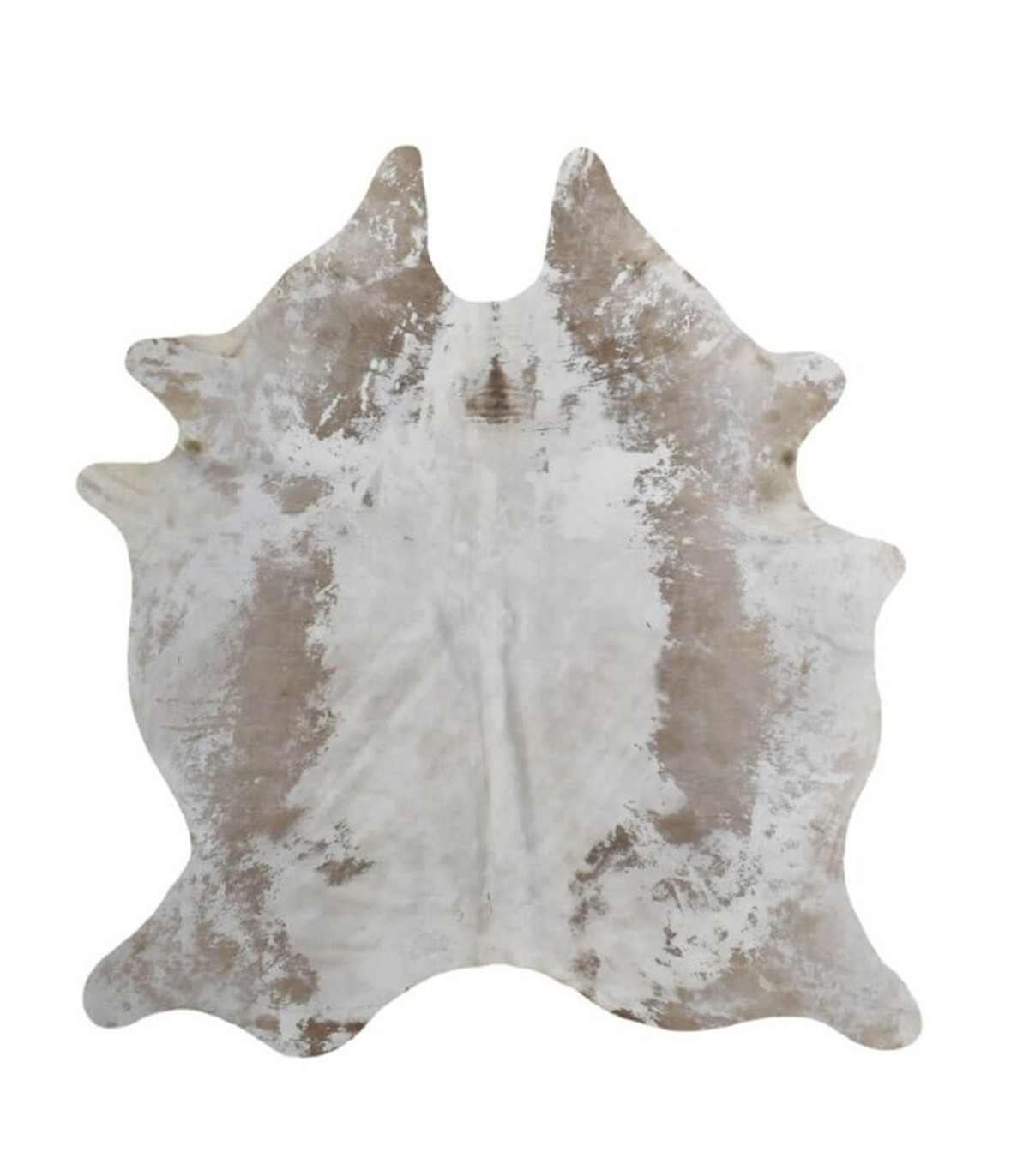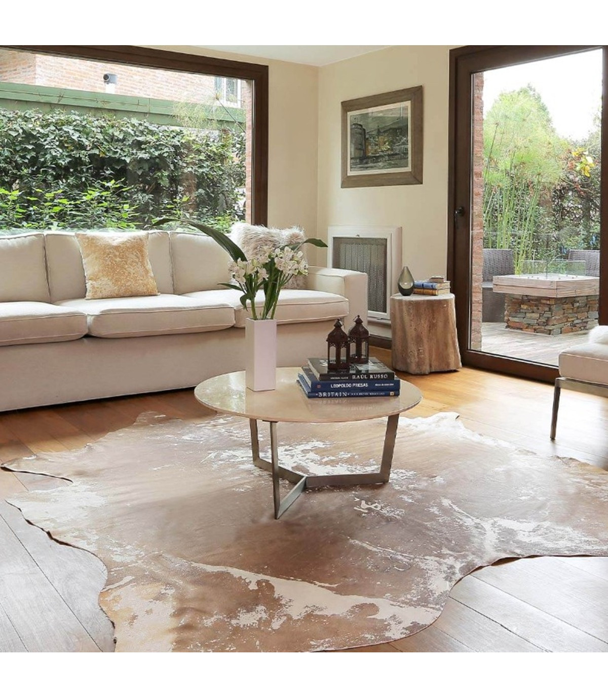 Alfombra de cuero vacuno vintage claro, tonos suaves y textura artesanal que iluminan tus espacios. Marca Leder.