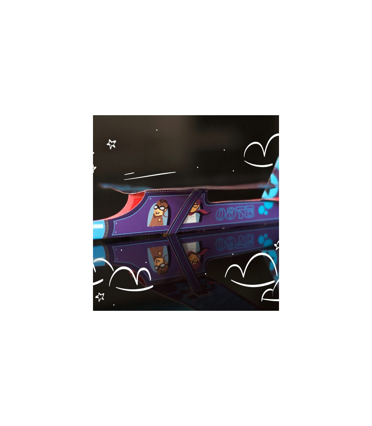 Juego para armar y volar aviones. Contiene aviones troquelados para armar, instrucciones de armado y adhesivo vinílico.