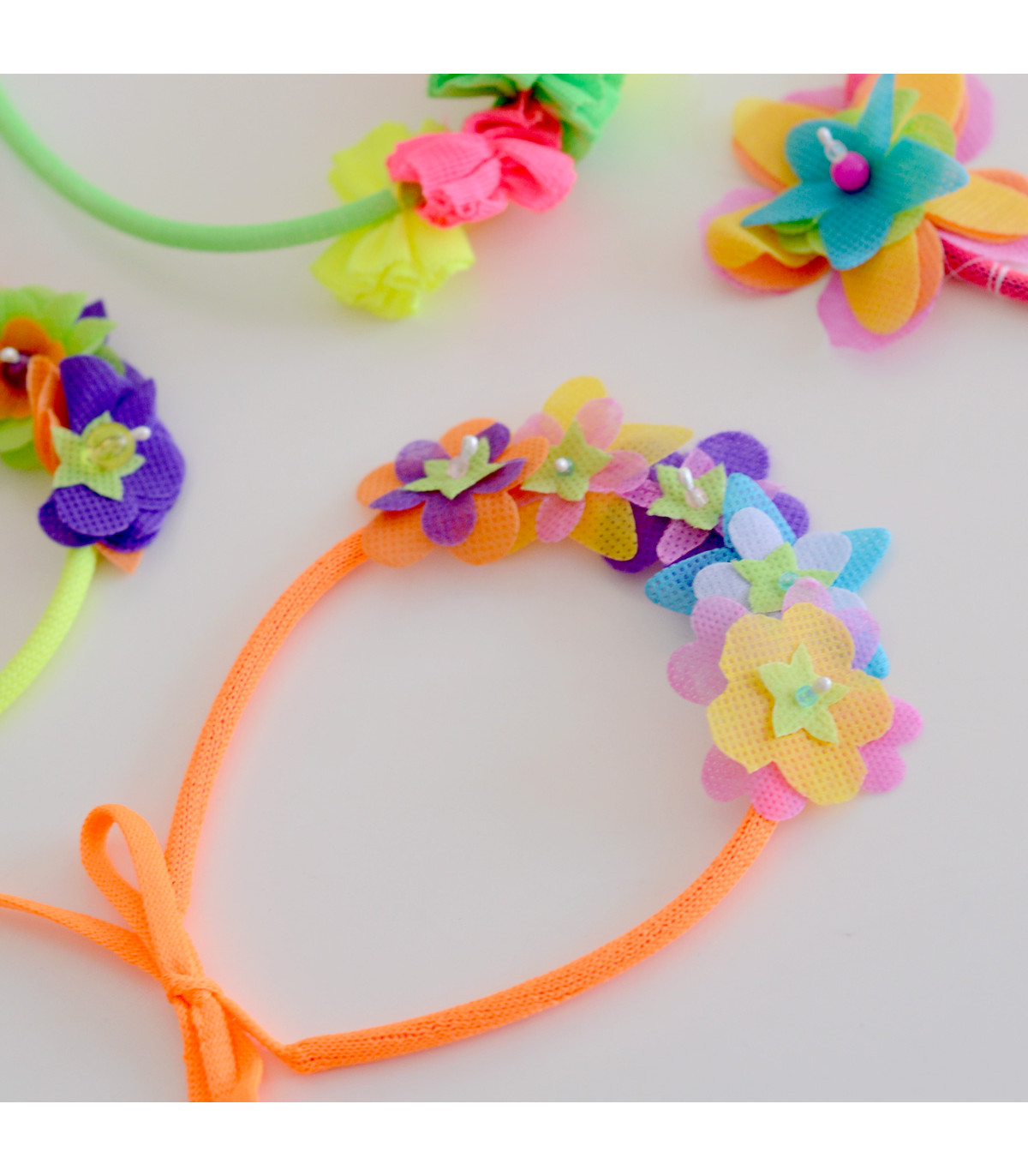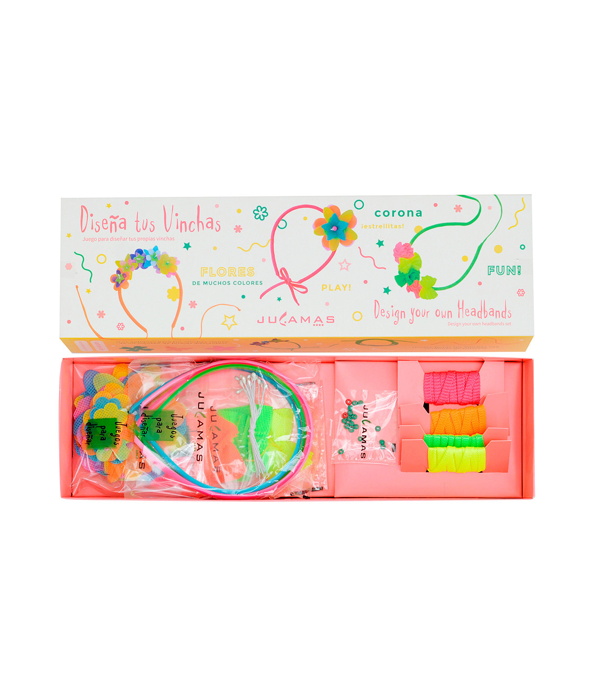 Juego para diseñar flores de papel. Contiene flores de papel estampadas, pétalos de colores, alambre forrado, cinta de color, mostacillas, clips, y palitos de madera.