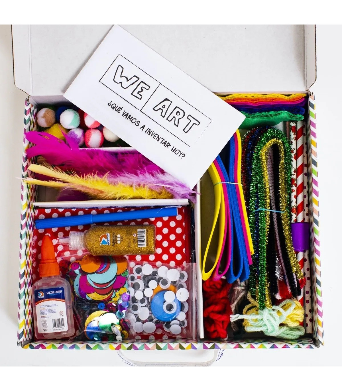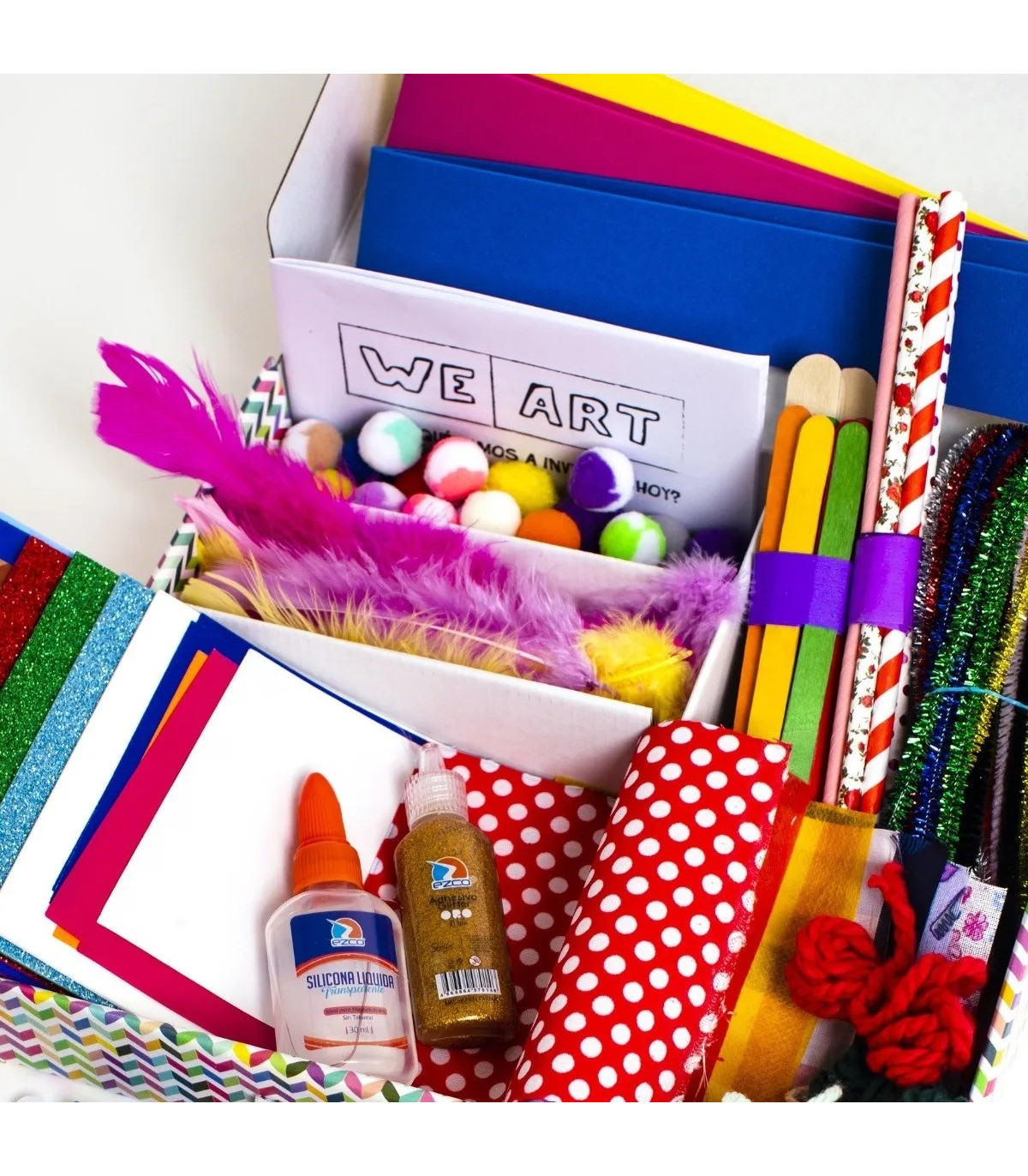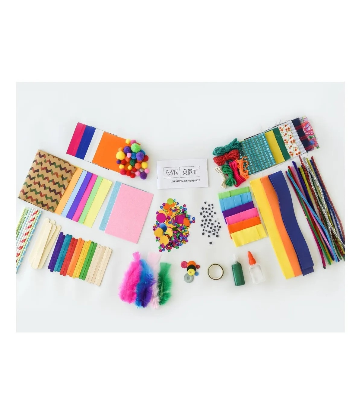 Caja We Art MEDIANA incluye + 300 piezas. Una caja llena de materiales para que los niños puedan desarrollar su imaginación y creatividad. Con la caja We Art, los niños tendrán horas de diversión armando sus propios juguetes!!!
