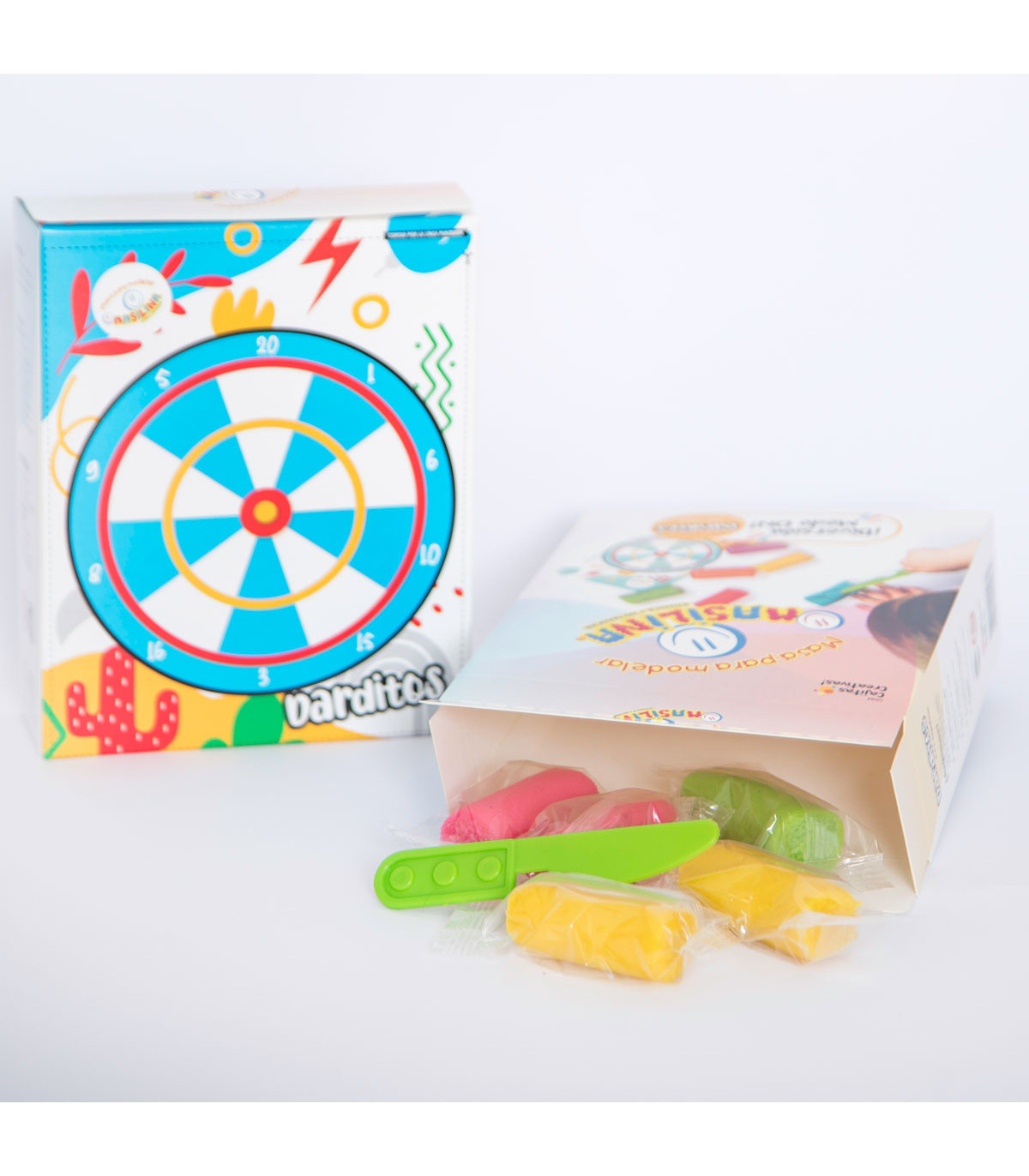 Un juego de dardos con un cuchillo y masas para que los chicos puedan crear sus propios dardos.