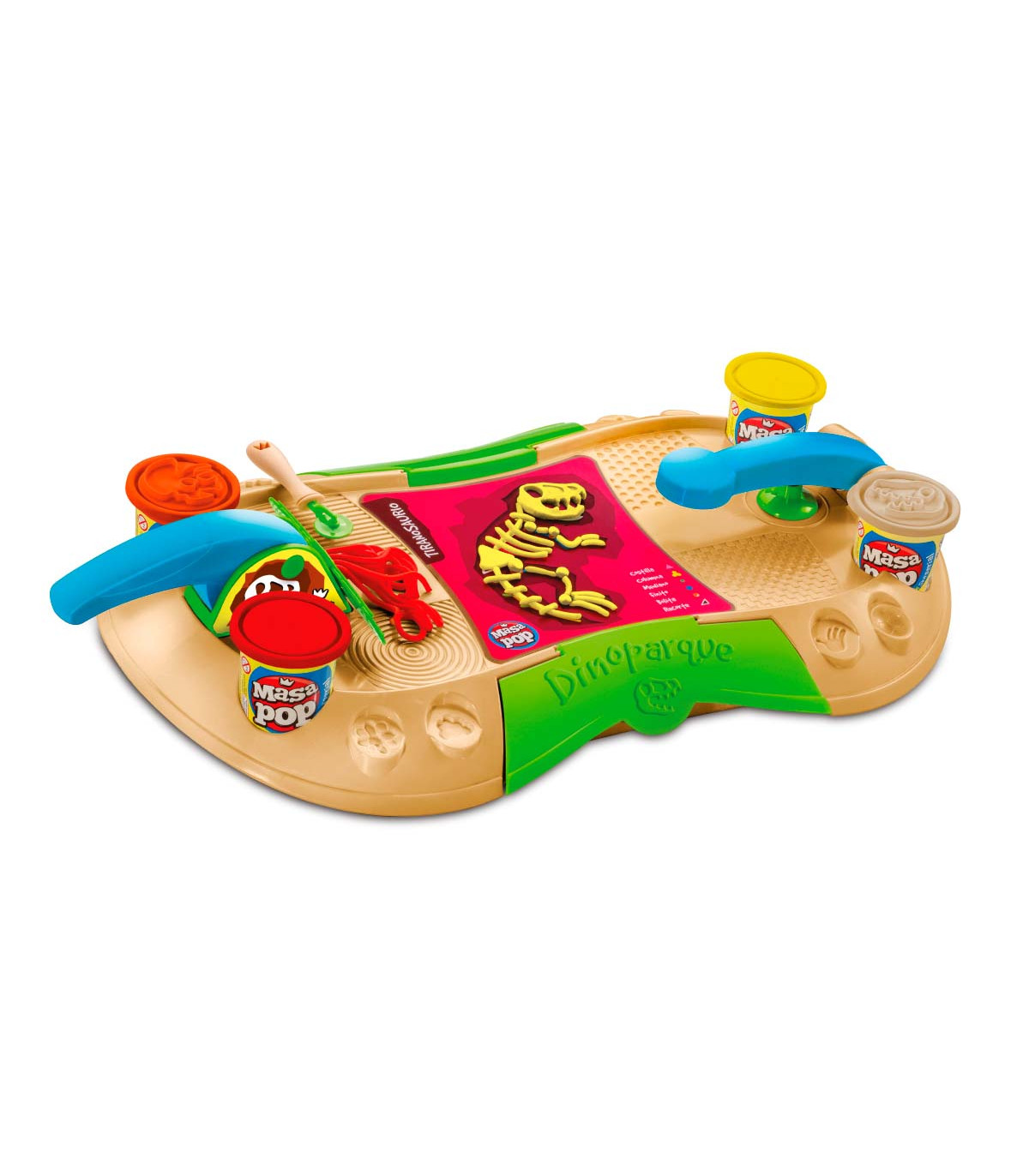 Un tablero multijuego para hacer fósiles de dinosaurios y revestirlos. Contiene 4 potes de masa pop, 2 cráneos, 2 planos para armar fósiles, 1 tablero con máquina JetPop, 3 herramientas Popsticks, 8 moldes prehistóricos y 2 reglas para modelar.