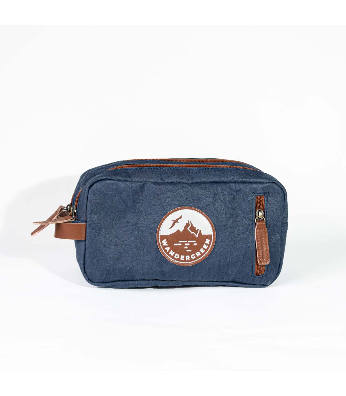 Neceser de viaje Wandergreen azul, resistente y organizado, ideal para cosméticos y básicos en tus aventuras.