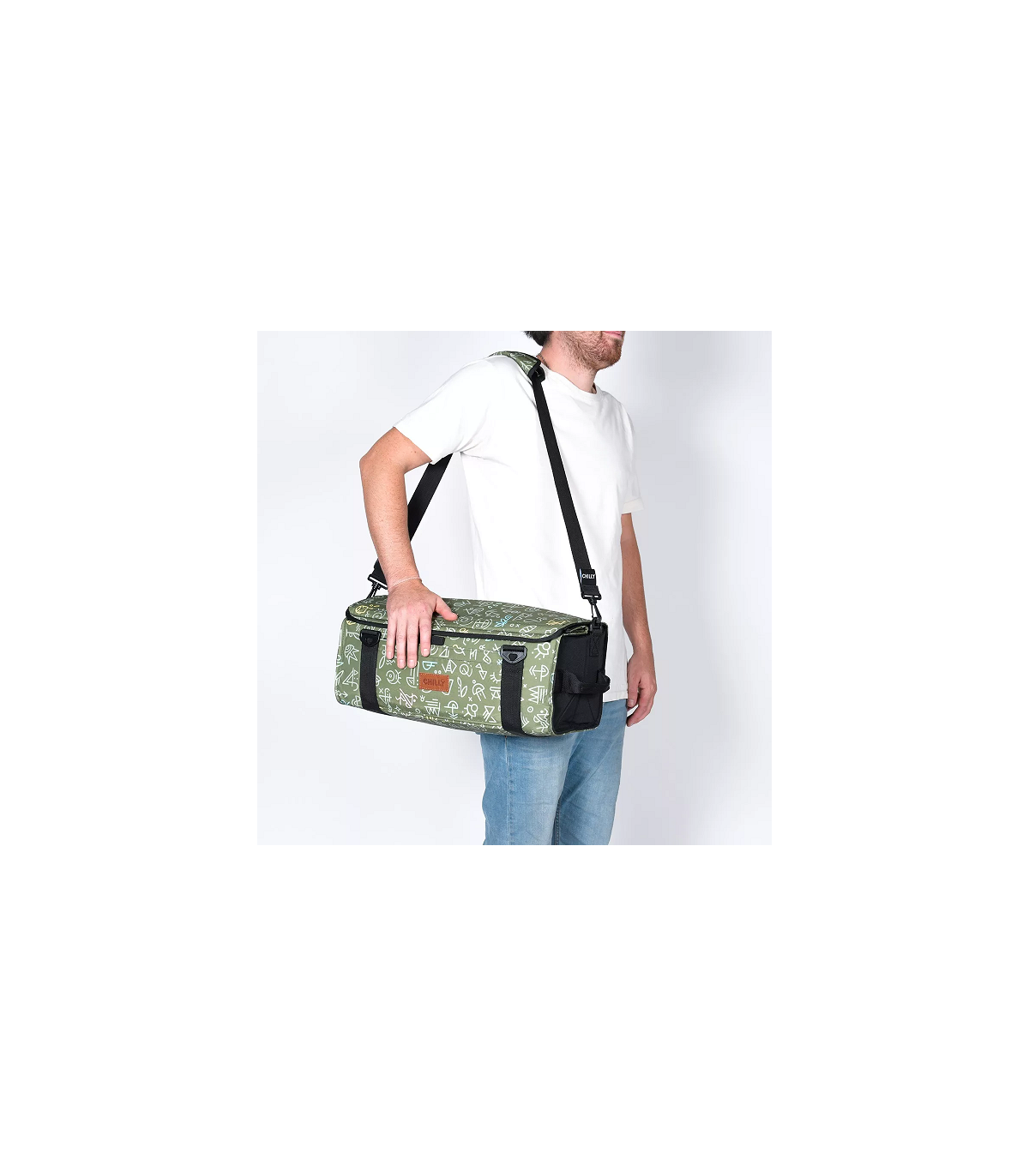 Un Bolso de viaje flexible, simple y práctico para llevar tu ropa en la escapada del fin de semana. Tiene la capacidad de ser versátil tanto en capacidad como en transporte. Por medio del abrojo se puede variar su capacidad de 20 a 30 lts. A traves de los