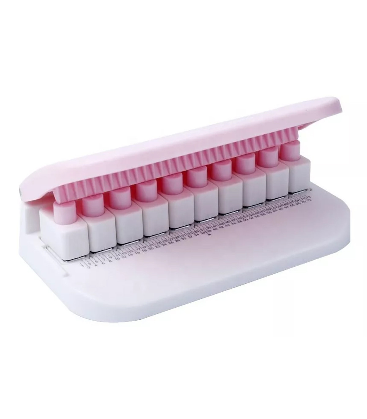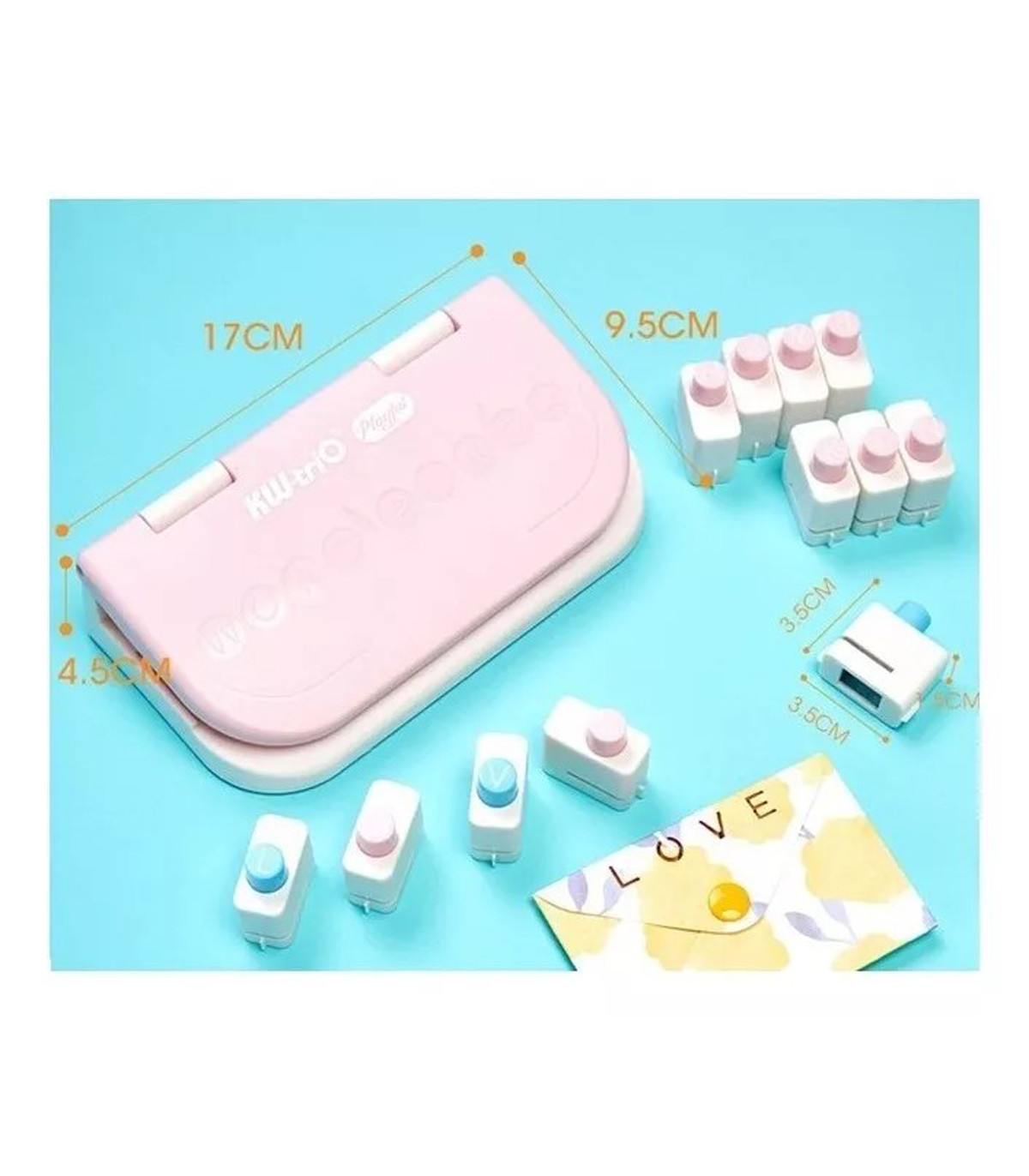 Una base de perforado con 26 letras que, combinadas, pueden formar cualquier palabra. Cada perforación tiene un tamaño de 20 mm, lo que garantiza letras bien definidas y legibles.