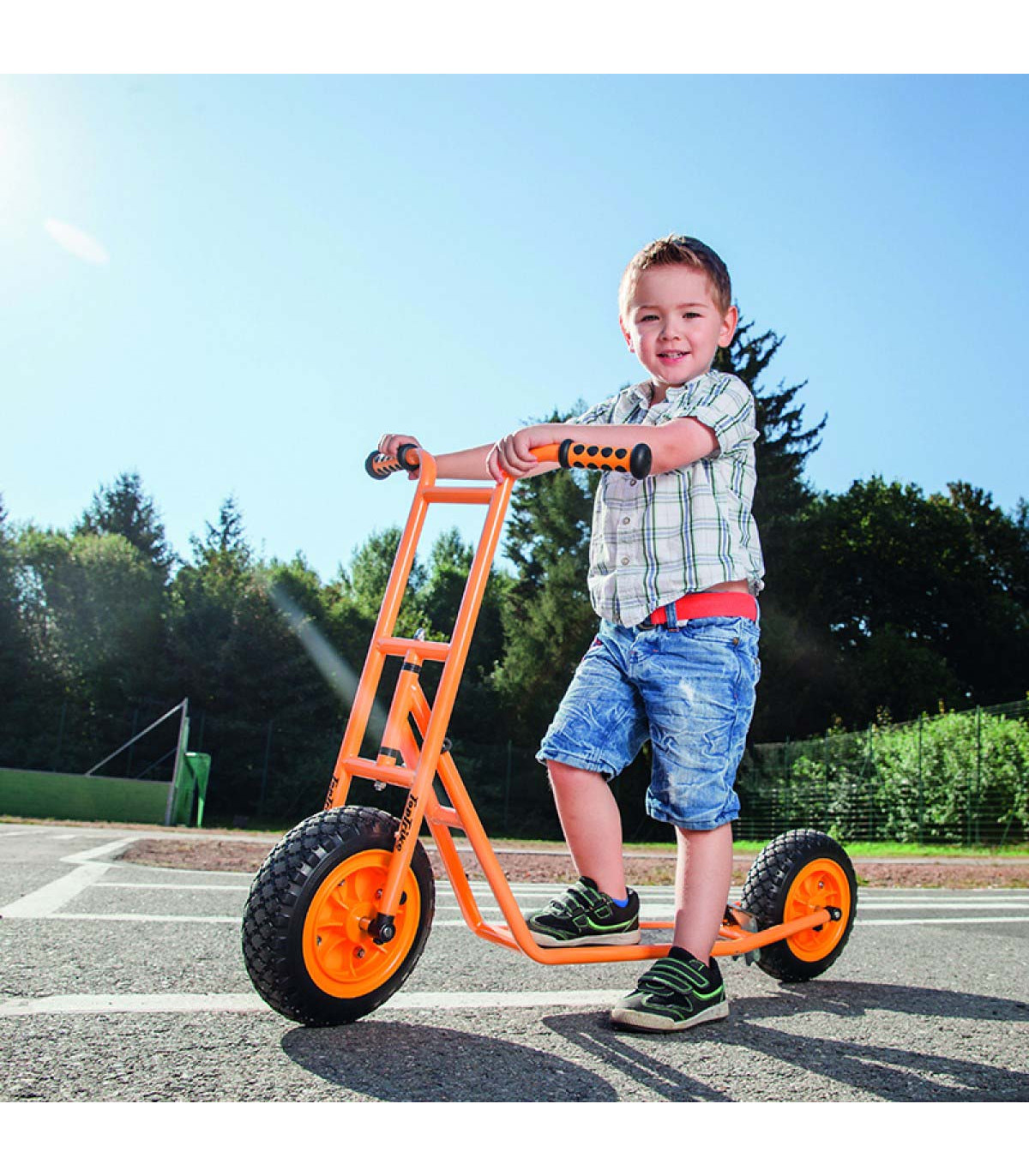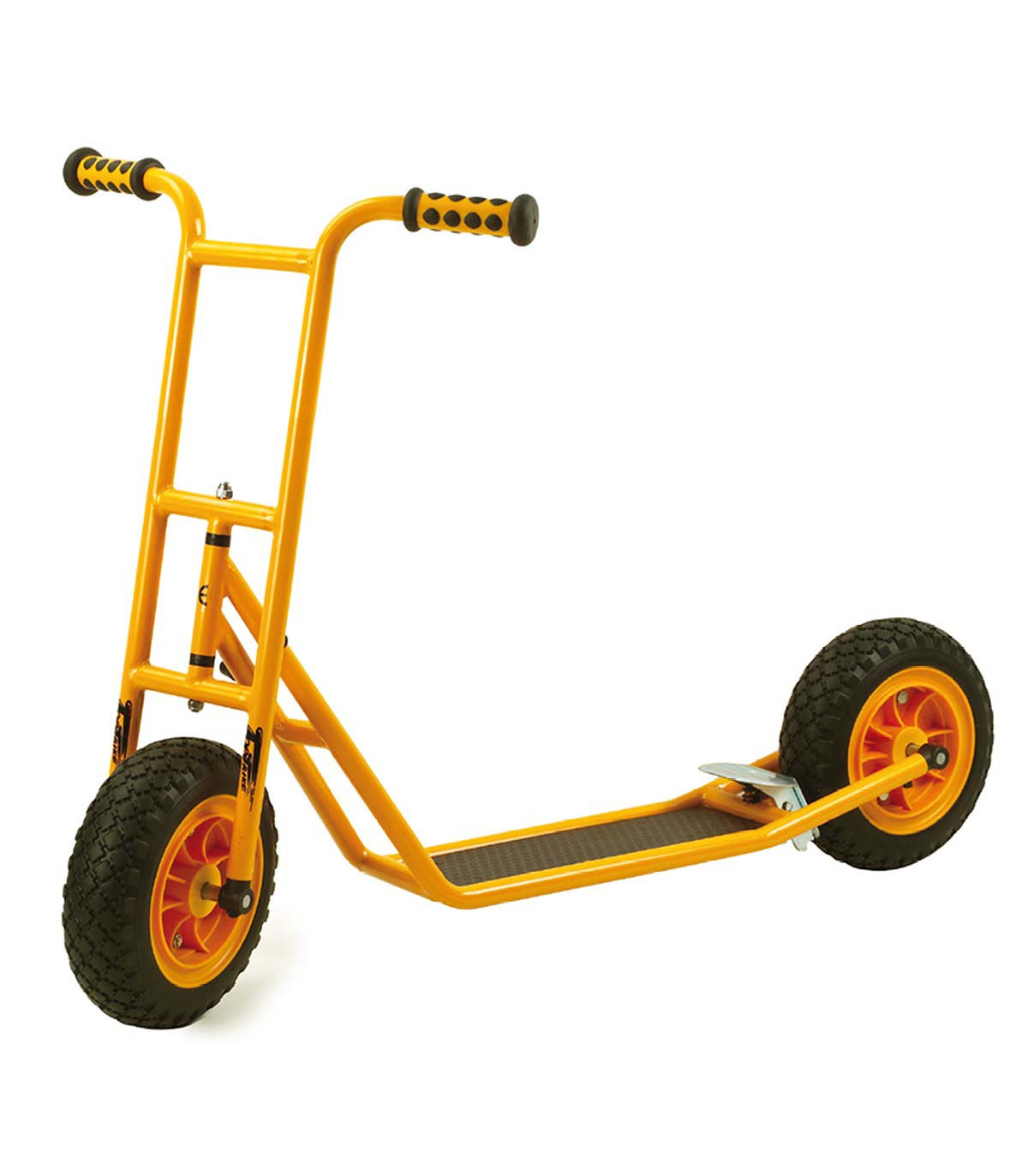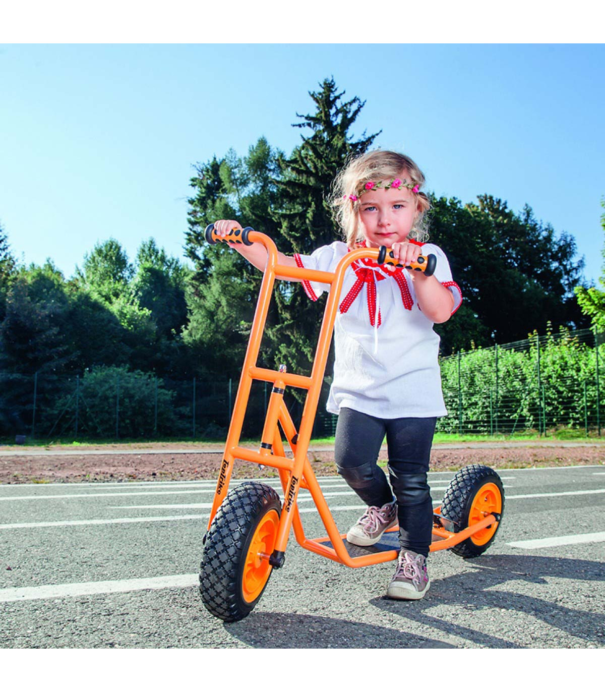 El monopatin pequeño es tan bueno como su hermano mayor. También está equipado con una plataforma antideslizante, neumáticos de EVA y freno.