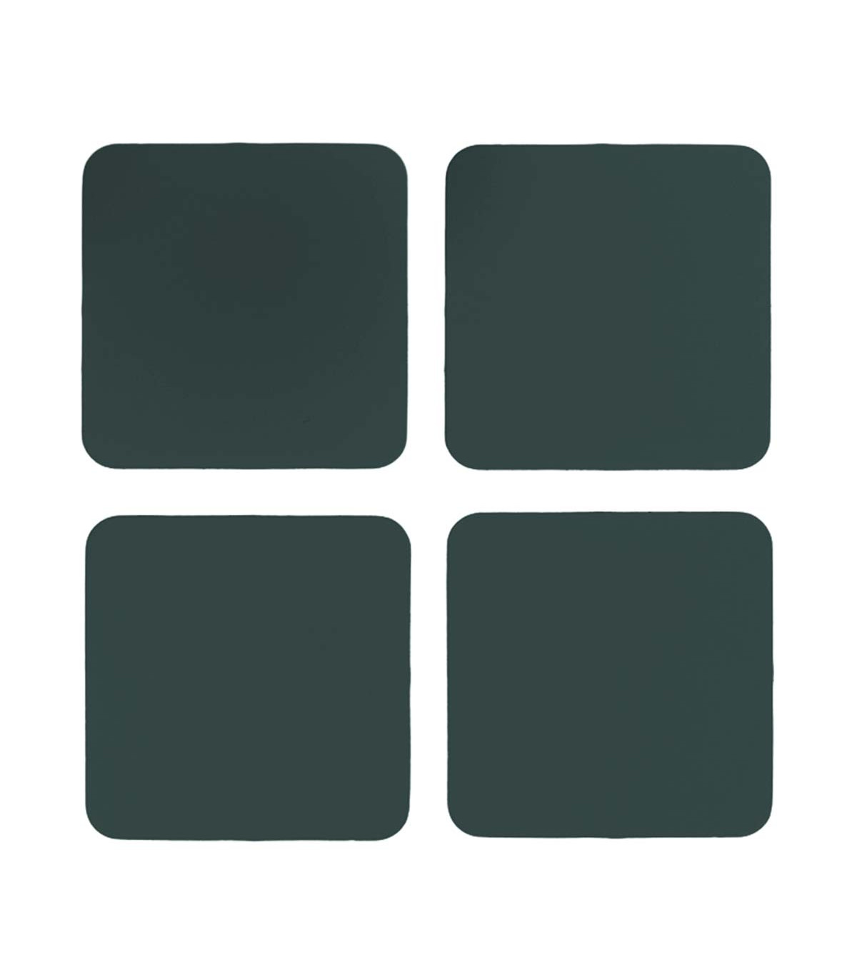 Set de 4 posavasos cuadrados de 10 x 10 cm, ideales para proteger tus muebles. Es un producto sustentable y duradero, hecho a mano con cuero reciclado.