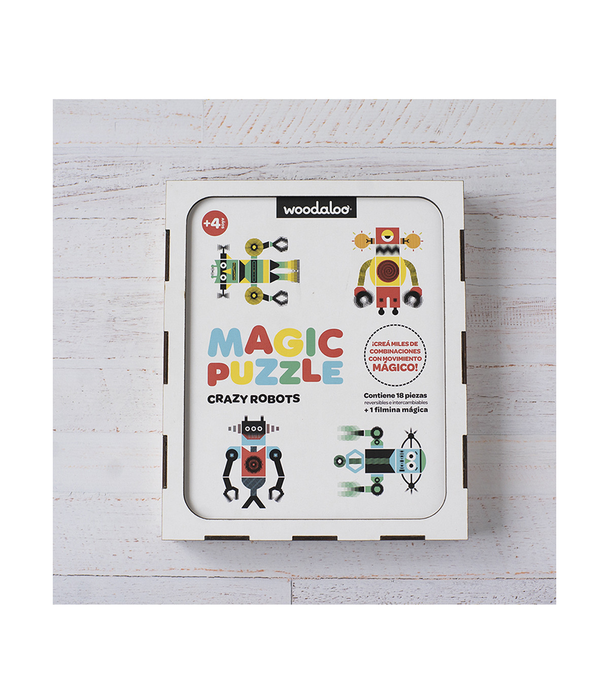 18 piezas combinables para crear miles de robots, combinarlos y darles movimiento mágico.