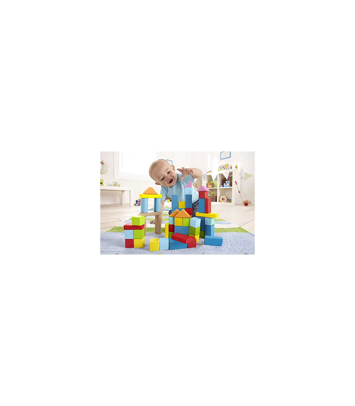 Estos robustos bloques de madera de colores tan vivos incitarán a los peques a querer manipularlos y jugar con ellos. Podrán construir una infinidad de torres, dejando volar la imaginación en todo momento. Es ideal para promover la motricidad.