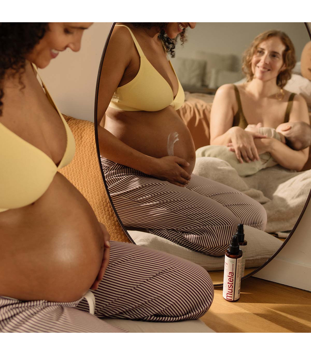 Leche corporal multiacción certificada BIO para cuidar la piel, especialmente durante el embarazo y parto. Fórmula 3 en 1, previene estrías, reafirma la piel y reduce sensación de picor. Ingredientes naturales. Sin perfume y compatible con la lactancia.