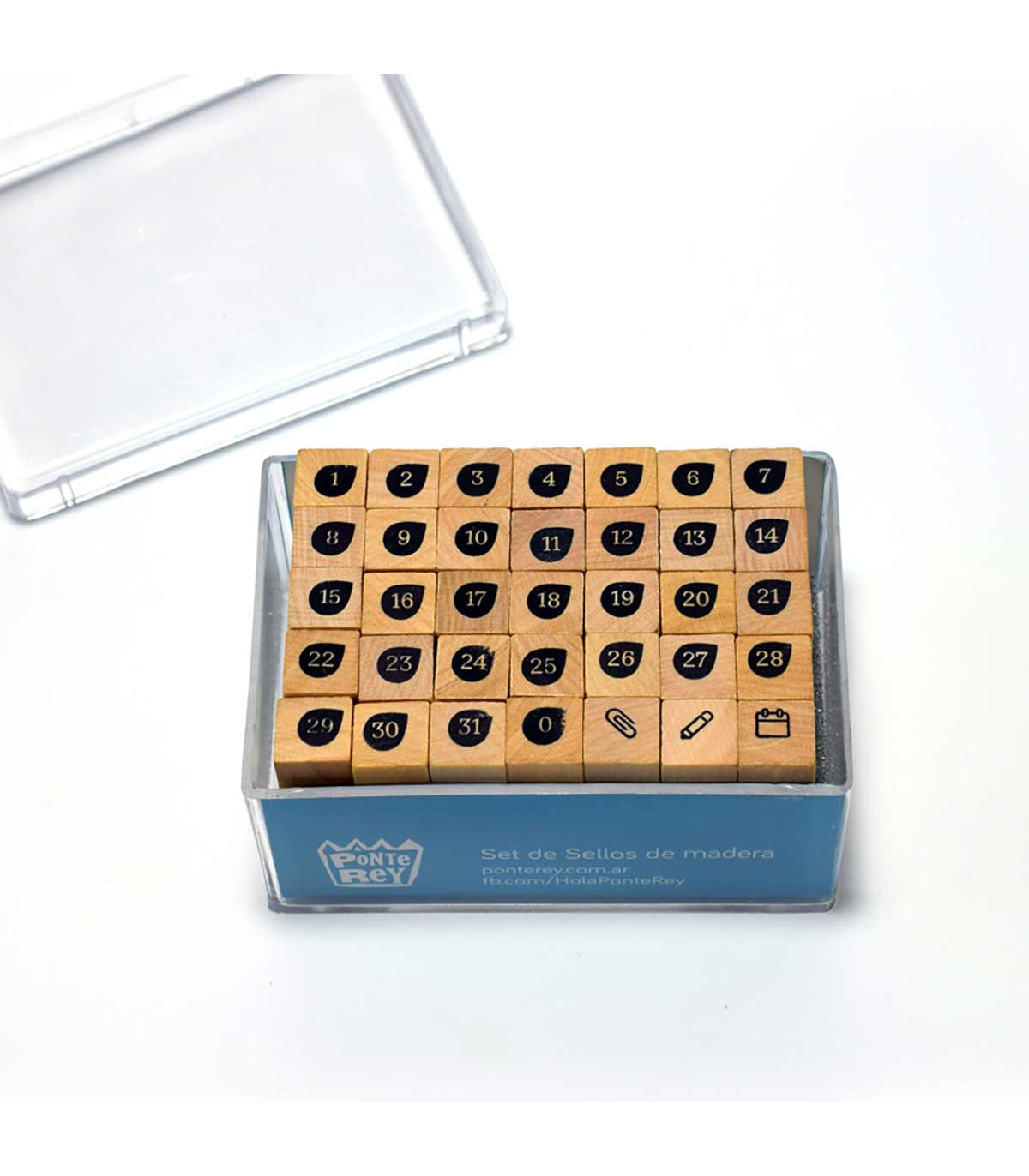 Set de sellos en bloques de madera, tema ”Bullet Journal Números Calendario”.Contiene 35 sellos de 1 x 1 x 3 cm de alto con números y 3 iconos para crear tu calendario en tu diario o Bullet Journal y personalizar todas las fechas importantes.