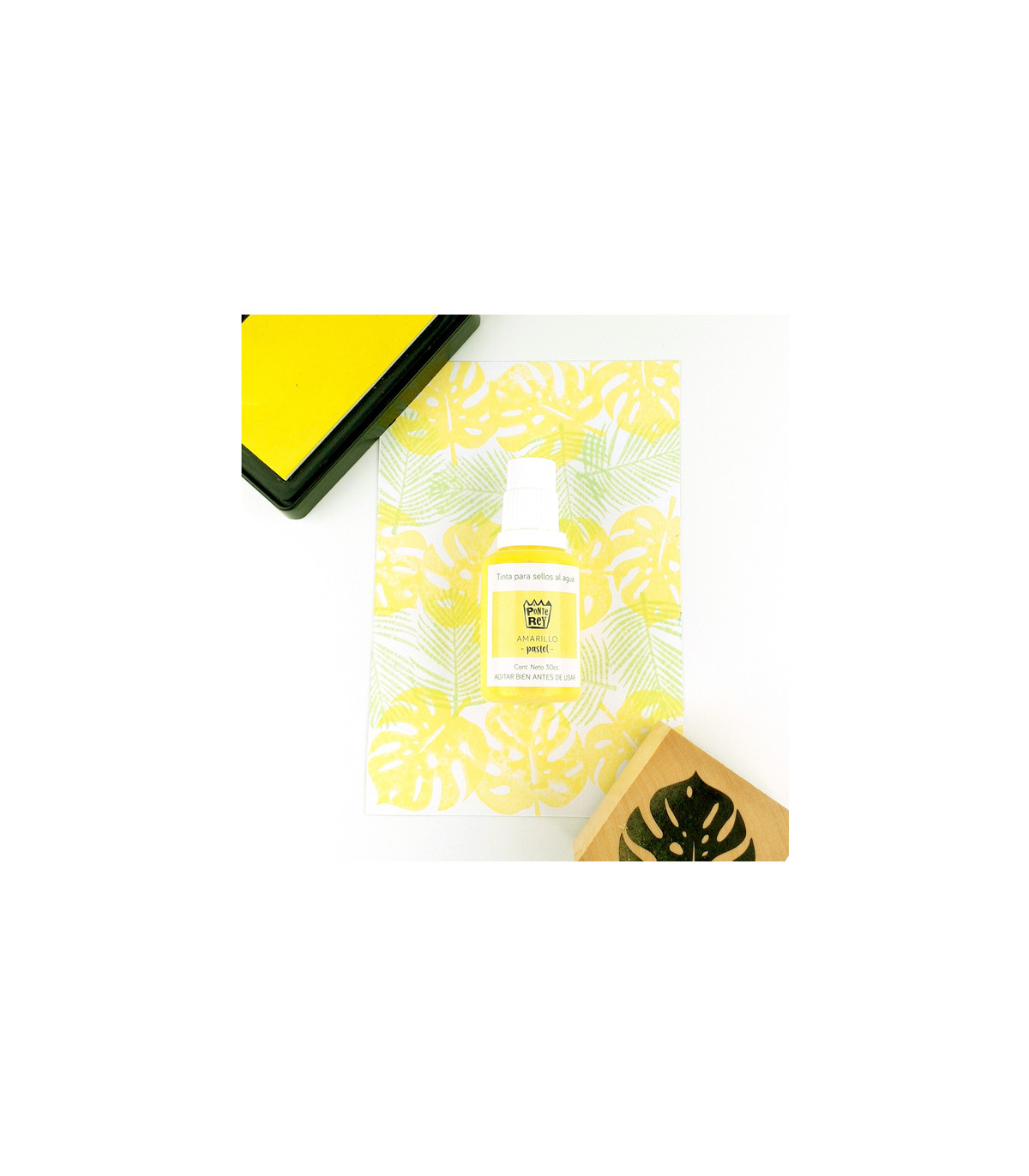 Botellita de 30 cm3, contiene tinta en base al agua color Amarillo pastel para sellos de goma, aptas para papel y cartón.