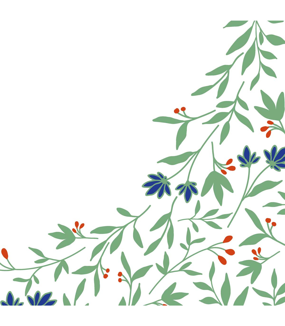 20 servilletas de papel para decorar tu mesa, de 24 x 24 cm, dobladas a 12 x 12 cm y empaquetadas. El papel es certificado FSC (forestación responsable), blanqueado sin cloro y colores de base acuosa.