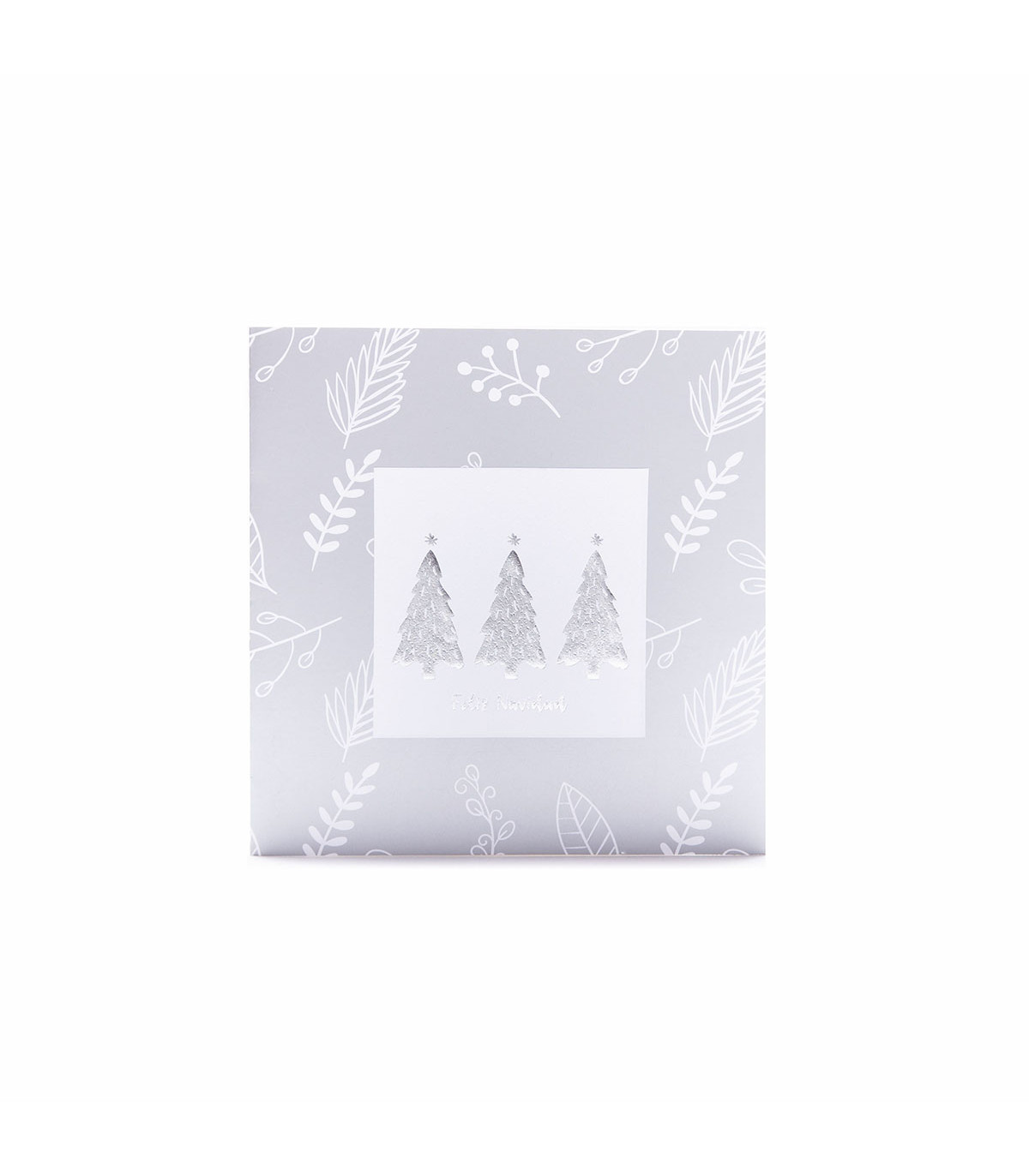 Una tarjeta con stamping tipo libro de papel ilustración de 115g, tapa y contratapa. Incluye un sobre blanco.