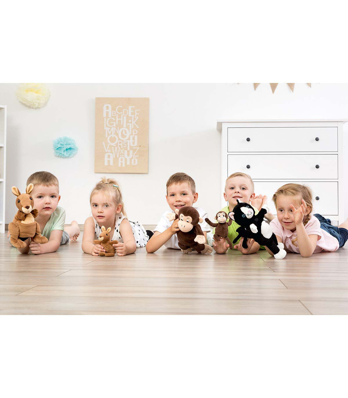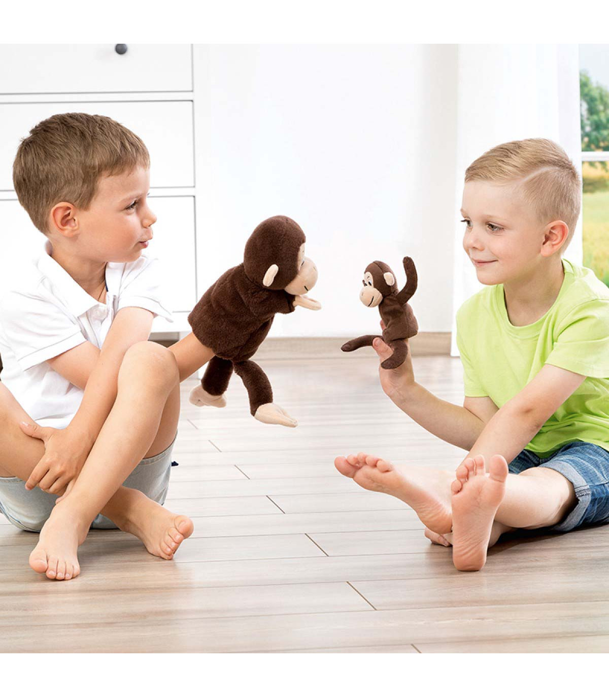 Dos títeres de mano de peluche para participar en las historias que inventan los chicos. Herramientas para estimular su imaginación, creatividad y expresión emocional, adoptando diferentes roles y dando voz a sus sentimientos e ideas.