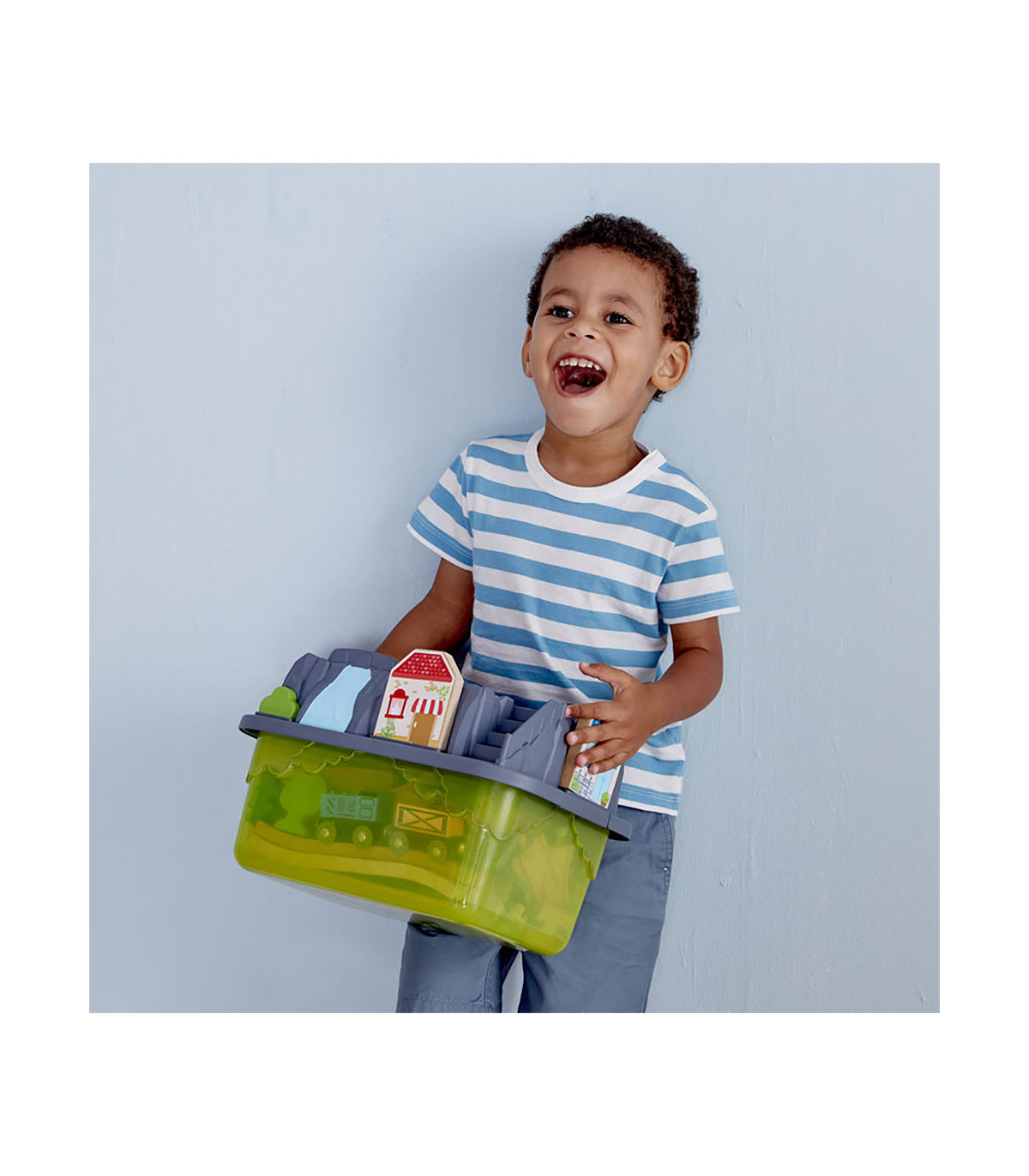 Este set de trenes te permite construir tu propio pueblo. Sacalo todo de la caja y usá la tapa para crear un pueblo que tus pasajeros y mercancías puedan cruzar. Hay mucho que hacer y ver con este juego de trenes de 50 piezas lleno de detalles.