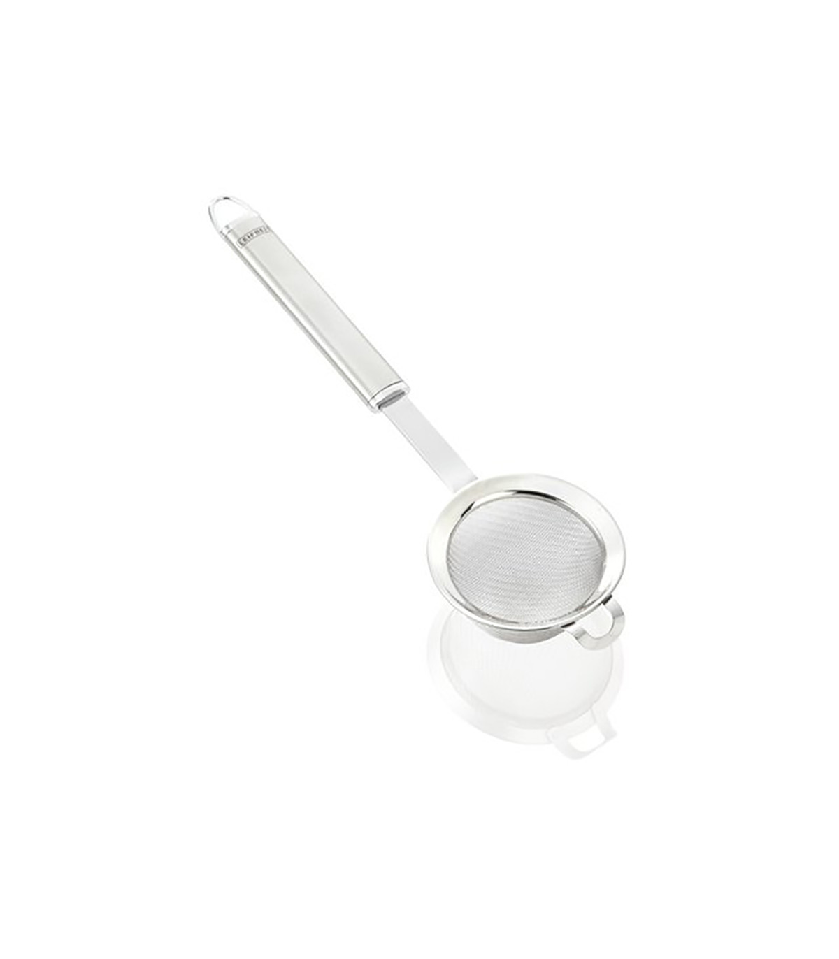 Construido en acero inoxidable color mate con una fina malla que lo convierte en un utensilio apto para tamiz.