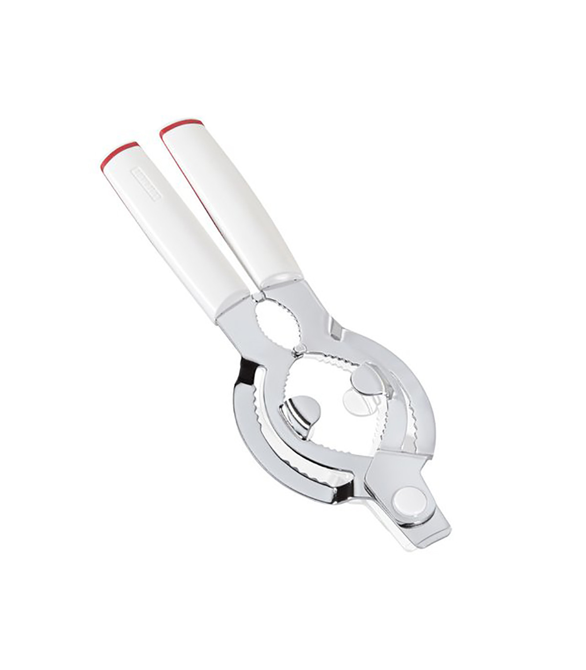 Abre sin esfuerzo tarros, botellas y latas y está provisto de un práctico abrebotellas. El mango oval se adapta bien y de forma segura a la mano.