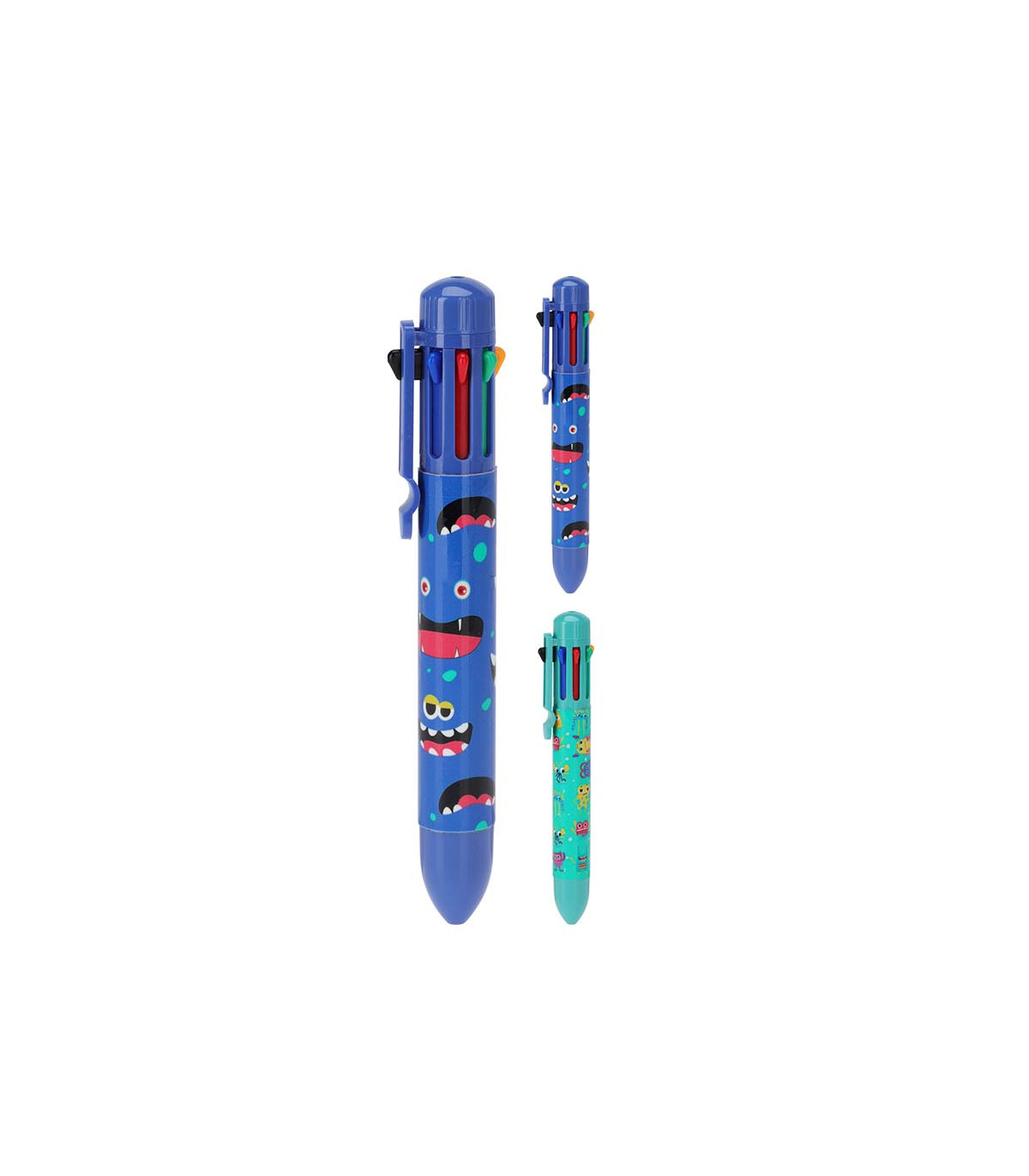 Una lapicera de la colección Monsters con puntas intercambiables de 8 colores: negro, violeta, amarillo, rosa, naranja, verde, rojo y azul.