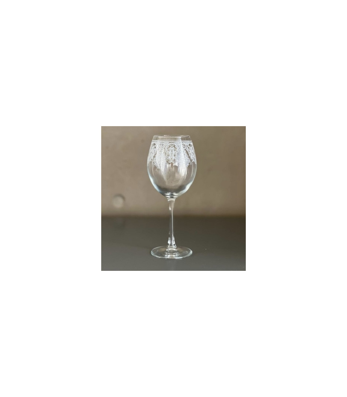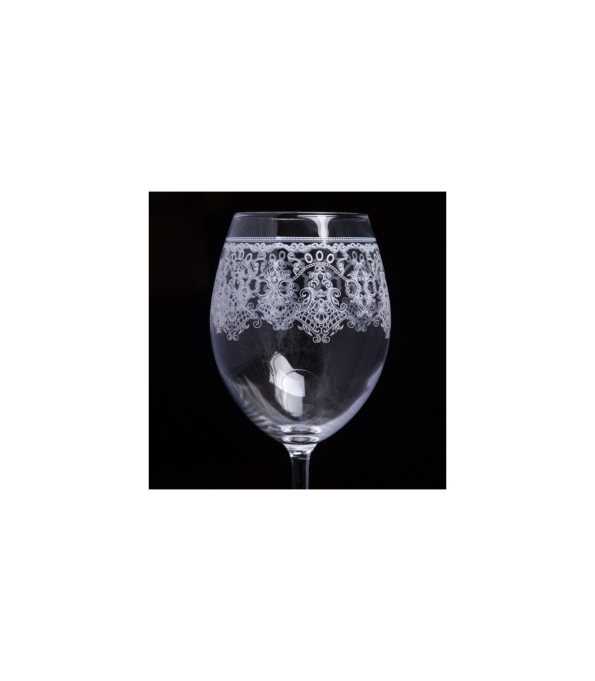 Copa de Vidrio con detalles en blanco. Medidas 9 x 23 cm