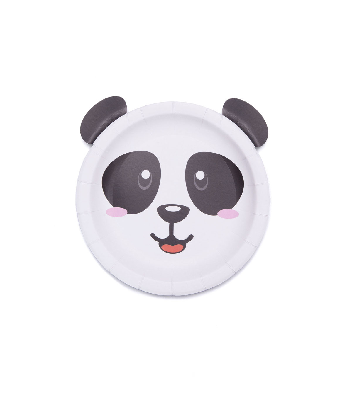 6 platos de cartón de 18.5 cm de diámetro con motivo y orejas de panda para decorar la mesa en fiestas de cumpleaños. Descartables y biodegradables.