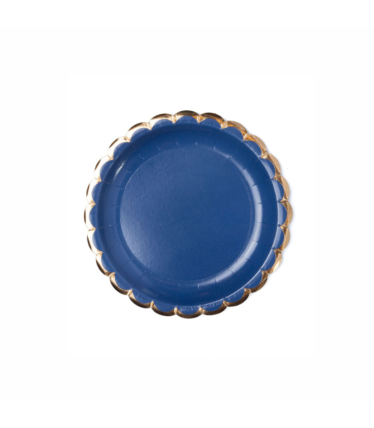 8 platos de cartón de 18 cm de diámetro con stamping dorado para decorar la mesa. Descartables y biodegradables.