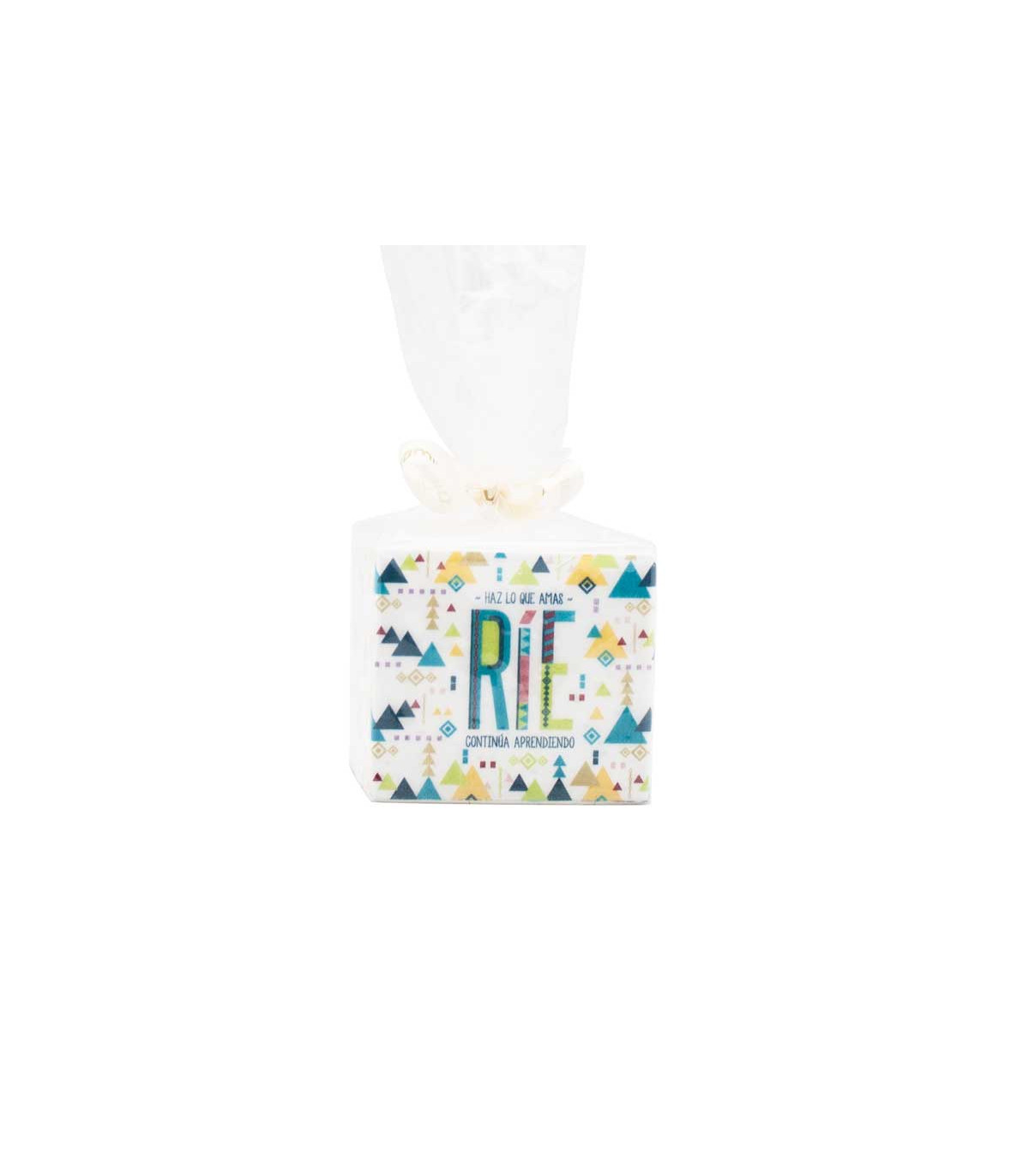 Una vela fanal cuadrada de 8 cm de lado y 7 cm de alto con decoupage de motivos de la colección. Colección: ?Simples secretos? Diseñó: ?Ríe?