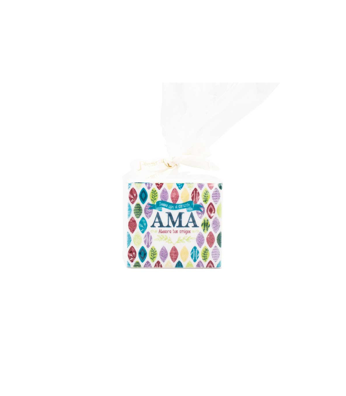Una vela fanal cuadrada de 8 cm de lado y 7 cm de alto con decoupage de motivos de la colección. Colección: ?Simples secretos? Diseñó: ?Ama?